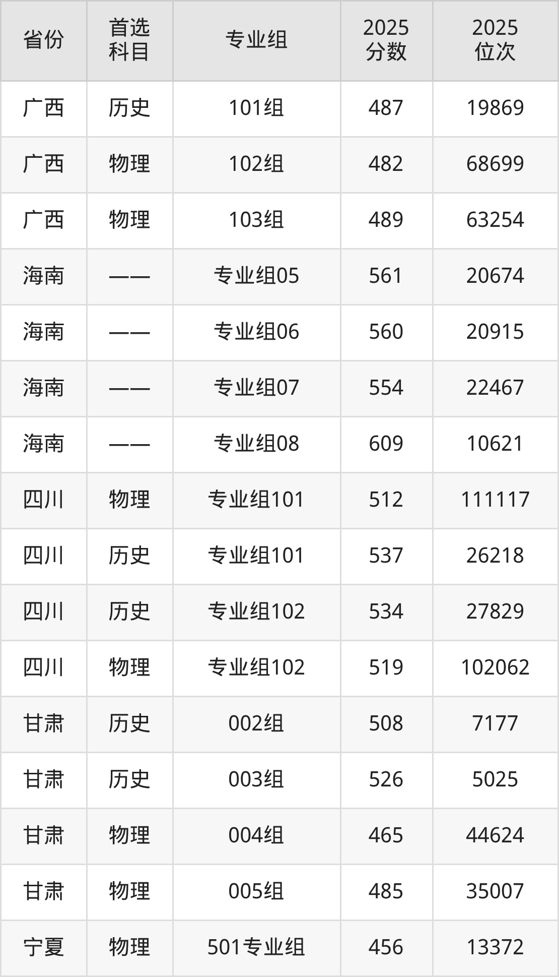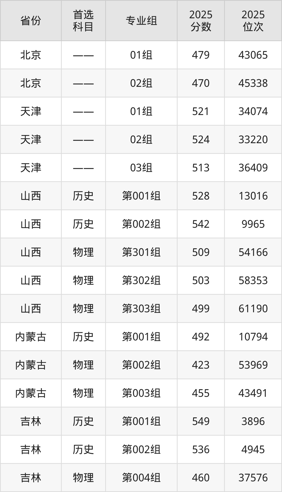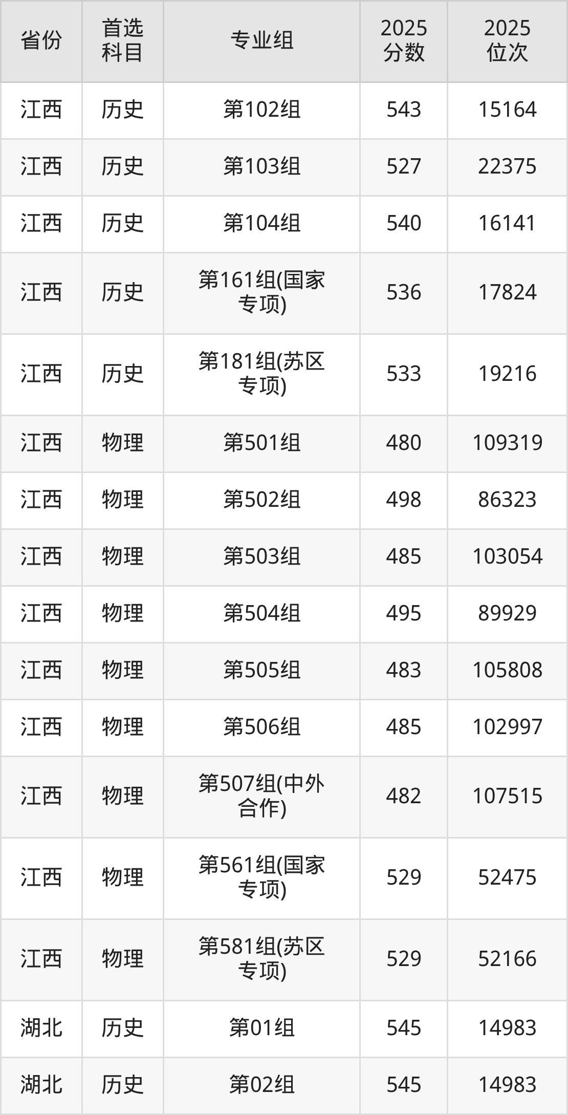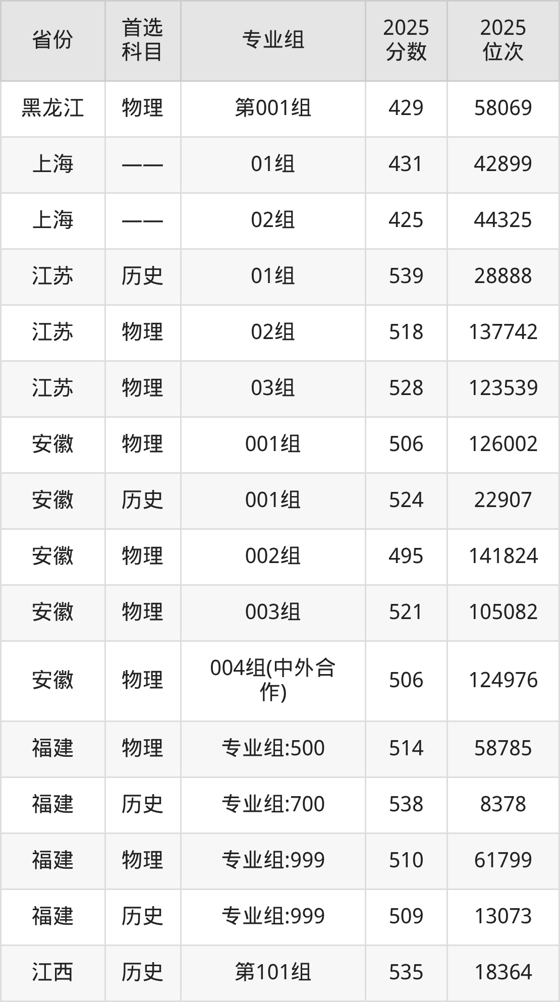 因为大部分地区目前只公布了院校(专业组)分数线,为了方便2026年考生参考,本文就整理出井冈山大学在全国各省不同科类的最低分: