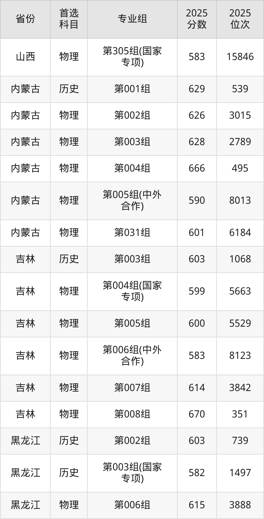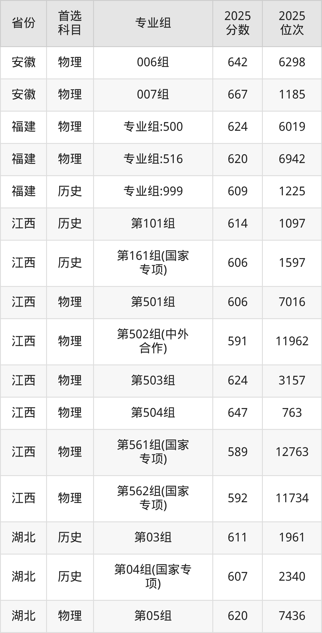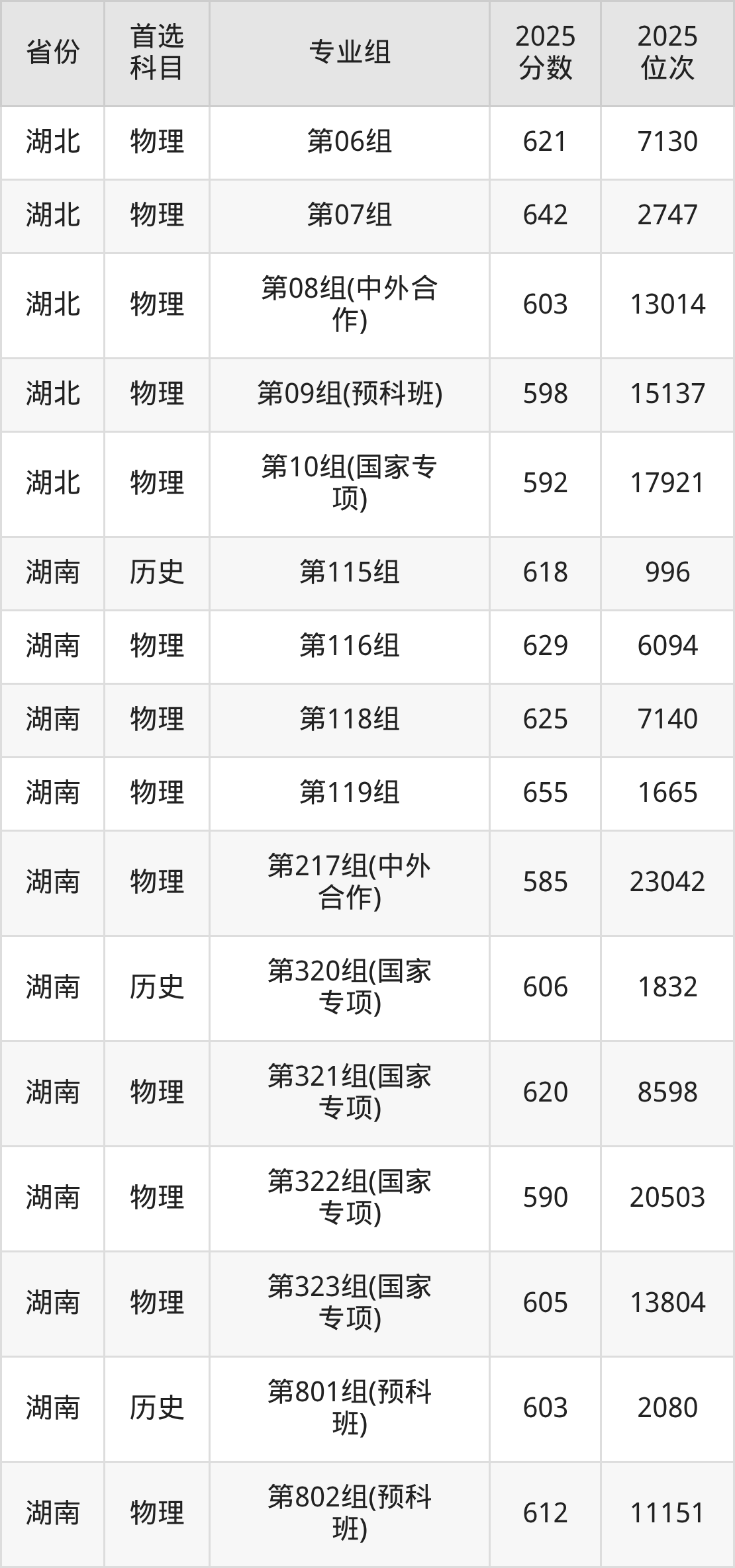 因为大部分地区目前只公布了院校(专业组)分数线,为了方便2026年考生参考,本文就整理出中南大学在全国各省不同科类的最低分: