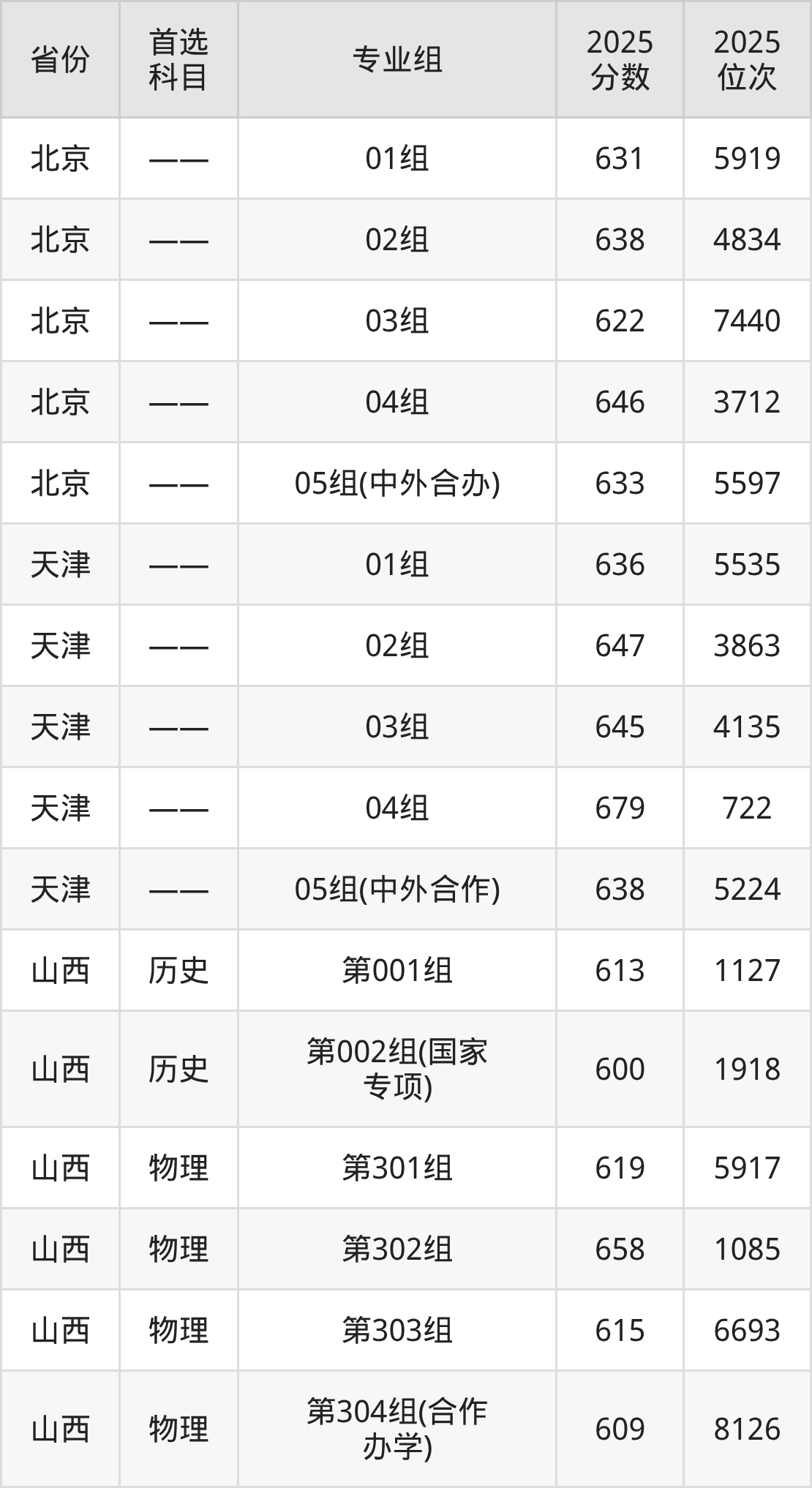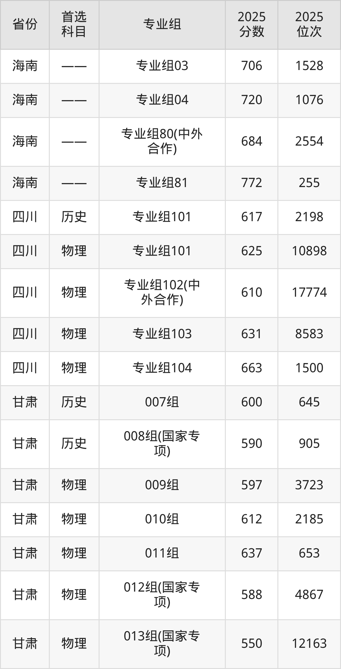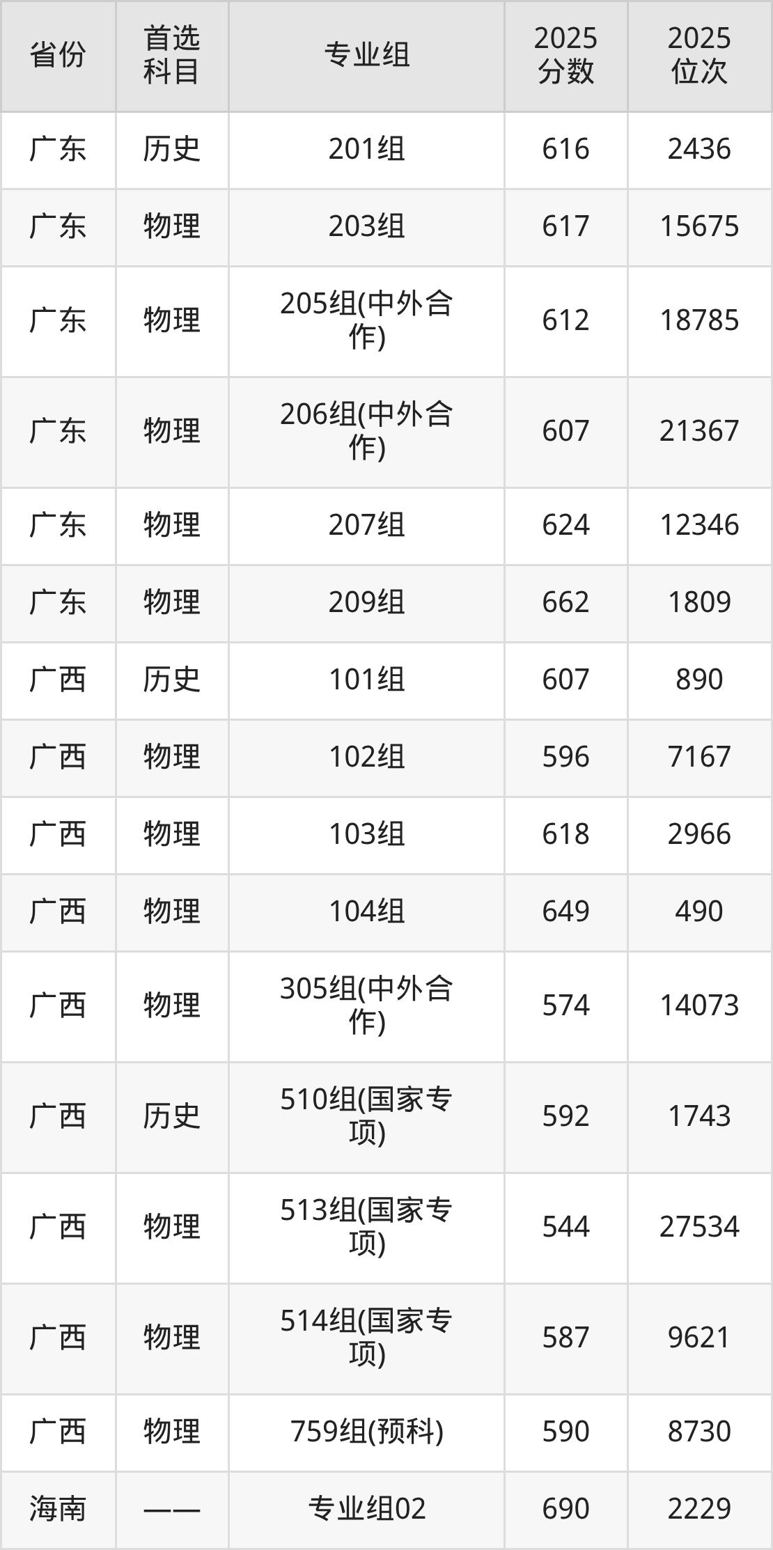 因为大部分地区目前只公布了院校(专业组)分数线,为了方便2026年考生参考,本文就整理出中南大学在全国各省不同科类的最低分: