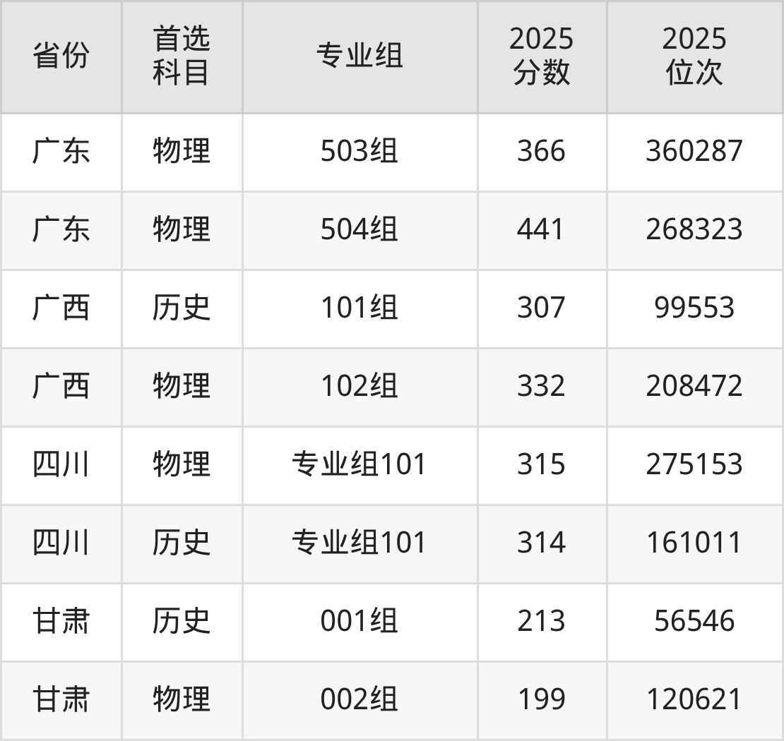 因为大部分地区目前只公布了院校(专业组)分数线,为了方便2026年考生参考,本文就整理出山东力明科技职业学院在全国各省不同科类的最低分: