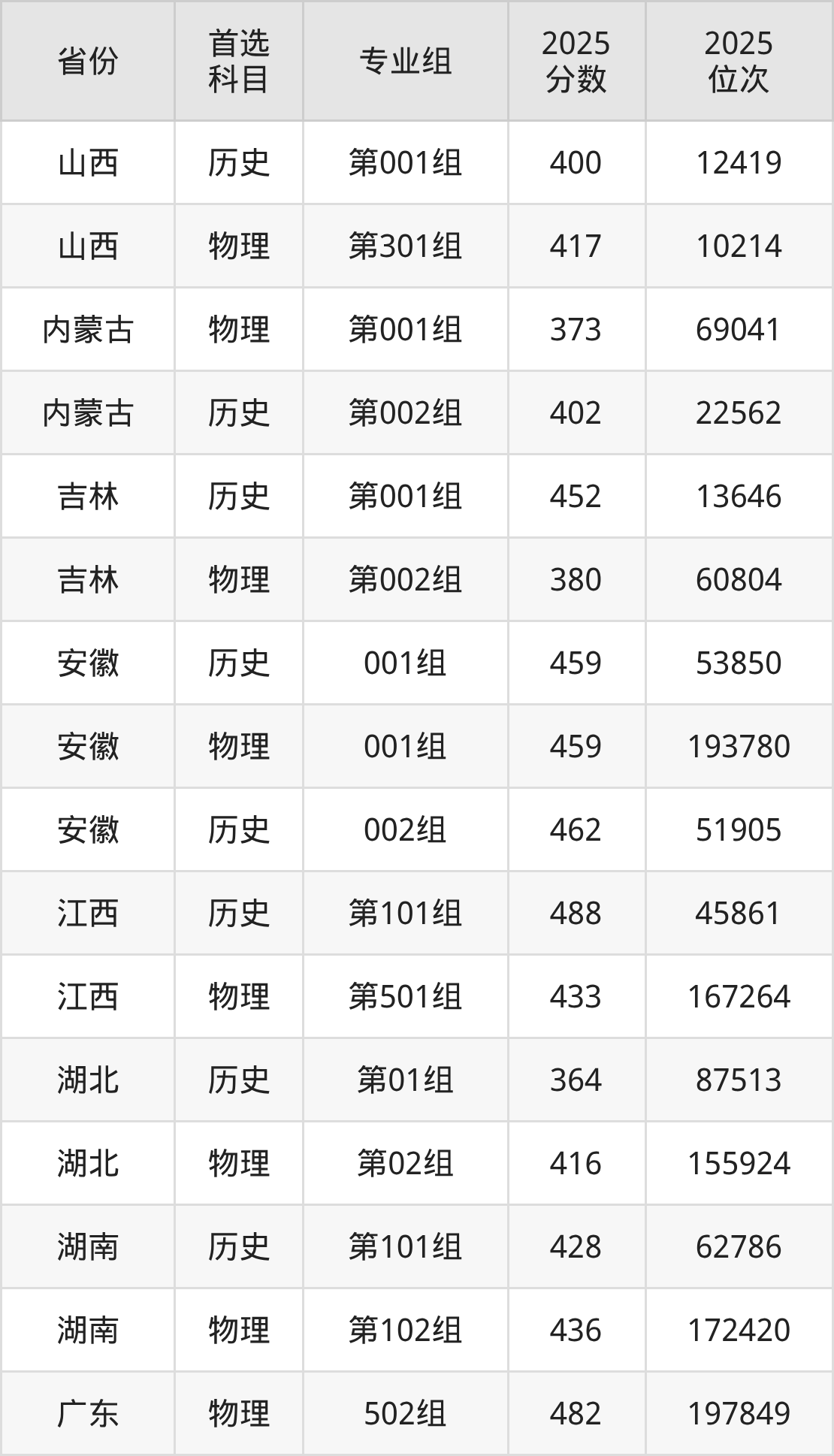 2.山西:历史类400分、12419位,物理类417分、10214位