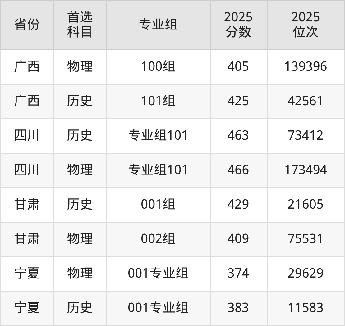 因为大部分地区目前只公布了院校(专业组)分数线,为了方便2026年考生参考,本文就整理出开封大学在全国各省不同科类的最低分: