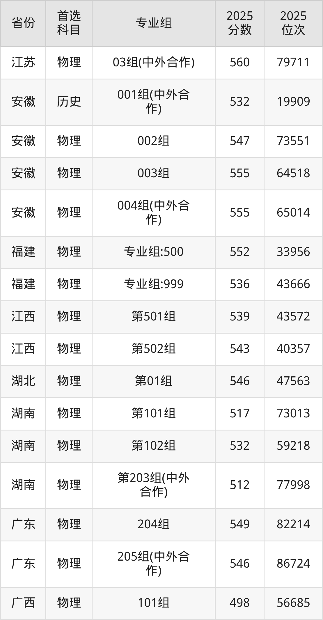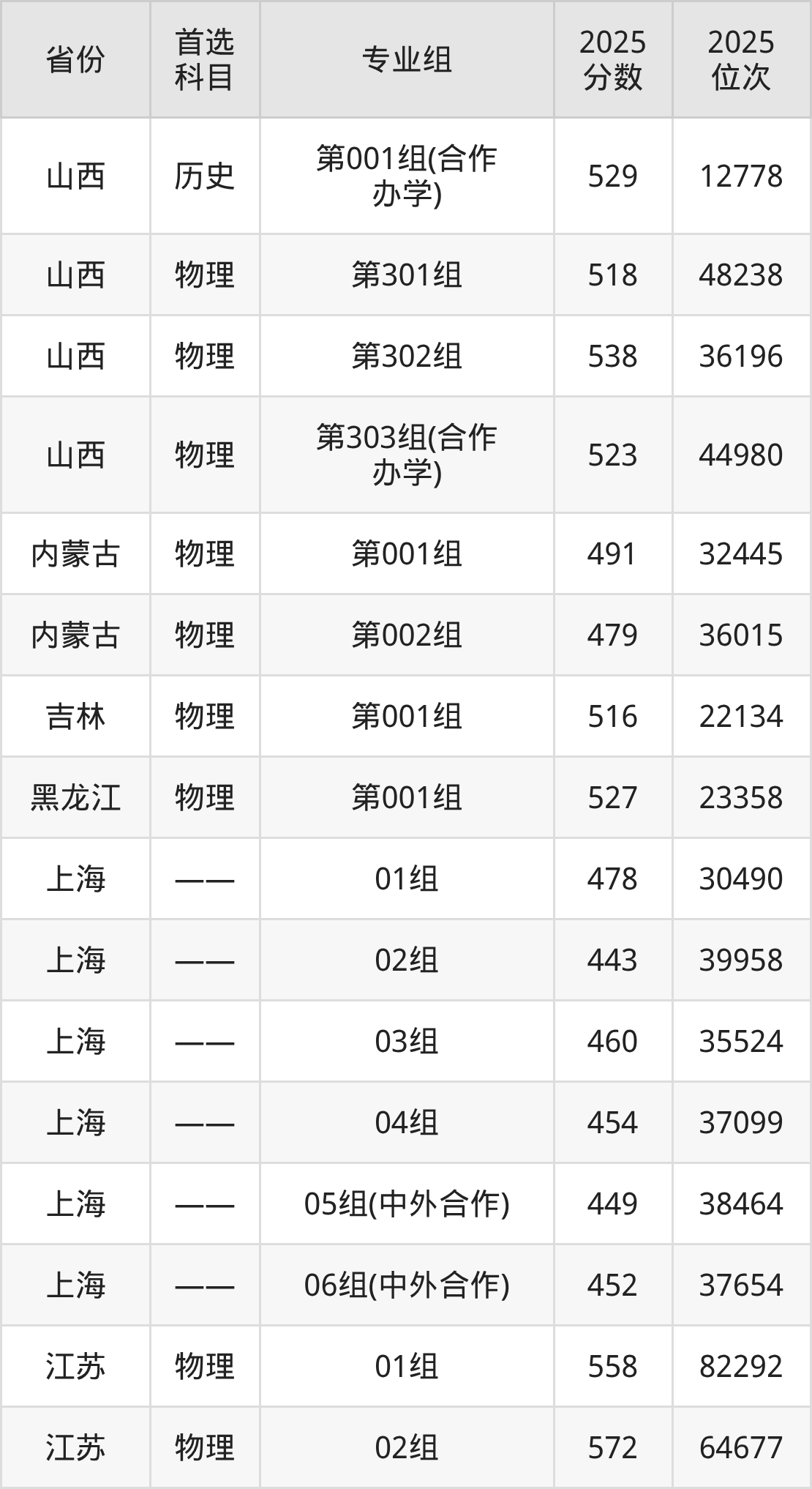 因为大部分地区目前只公布了院校(专业组)分数线,为了方便2026年考生参考,本文就整理出上海电机学院在全国各省不同科类的最低分: