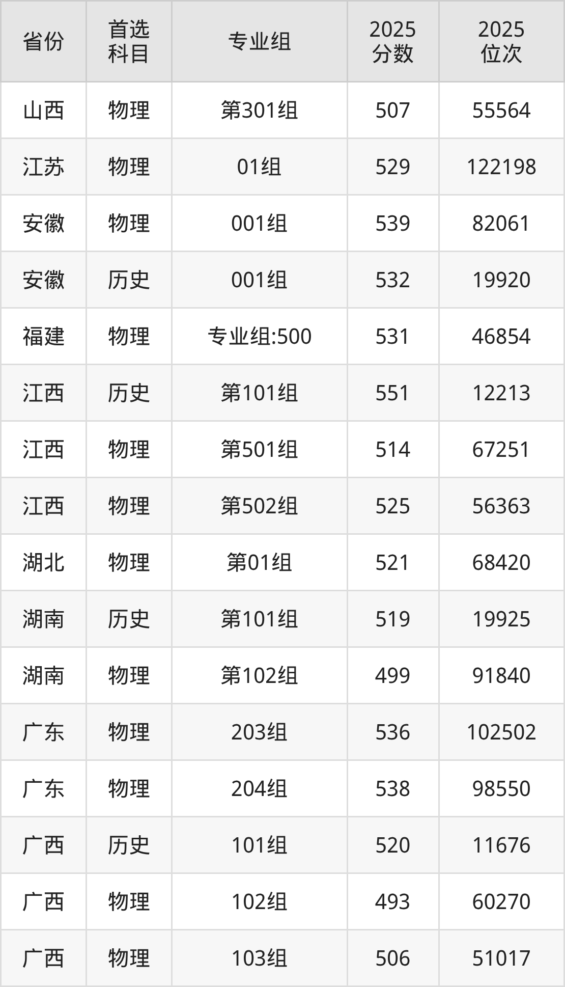 18.计算机科学与技术:550分、112361位