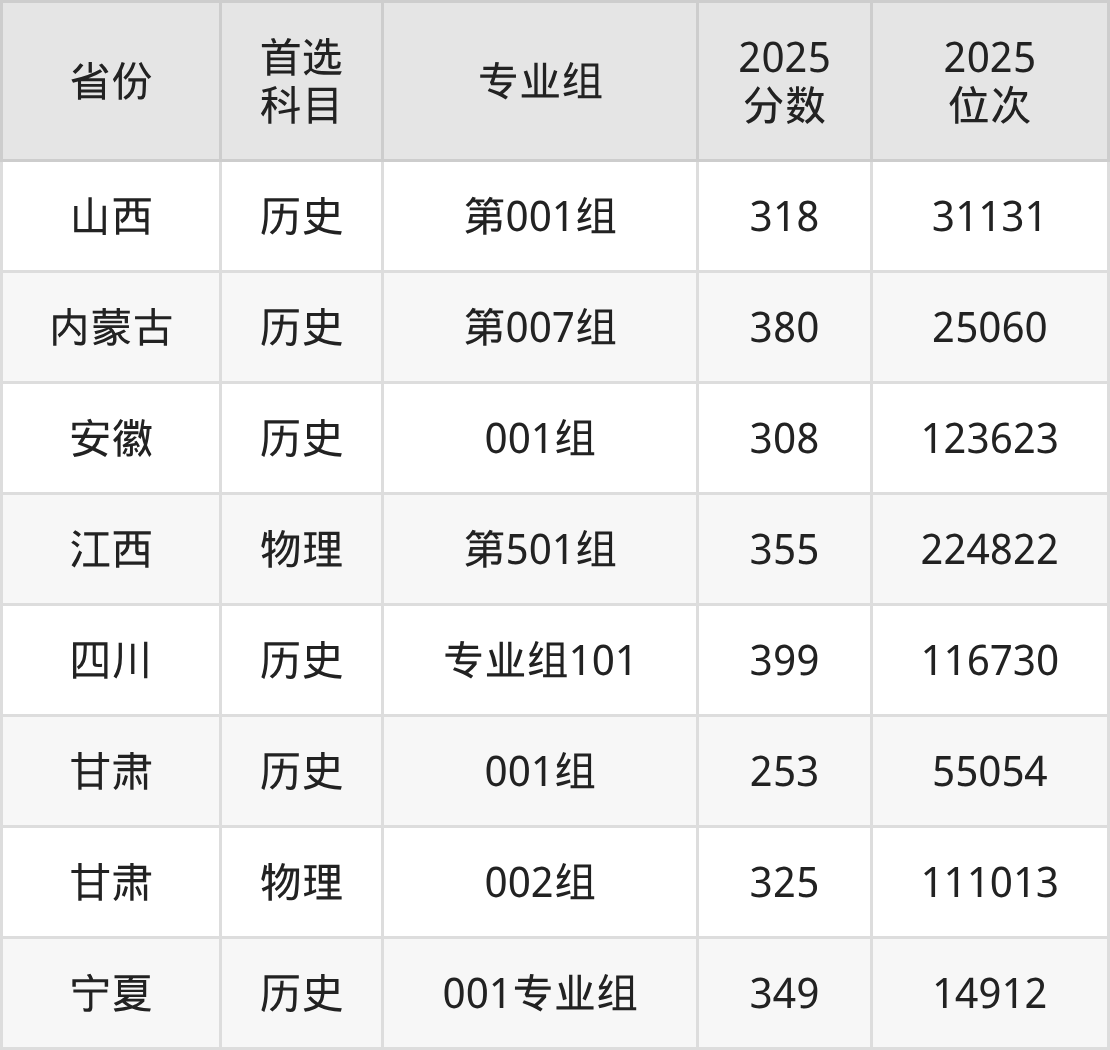因为大部分地区目前只公布了院校(专业组)分数线,为了方便2026年考生参考,本文就整理出陕西艺术职业学院在全国各省不同科类的最低分: