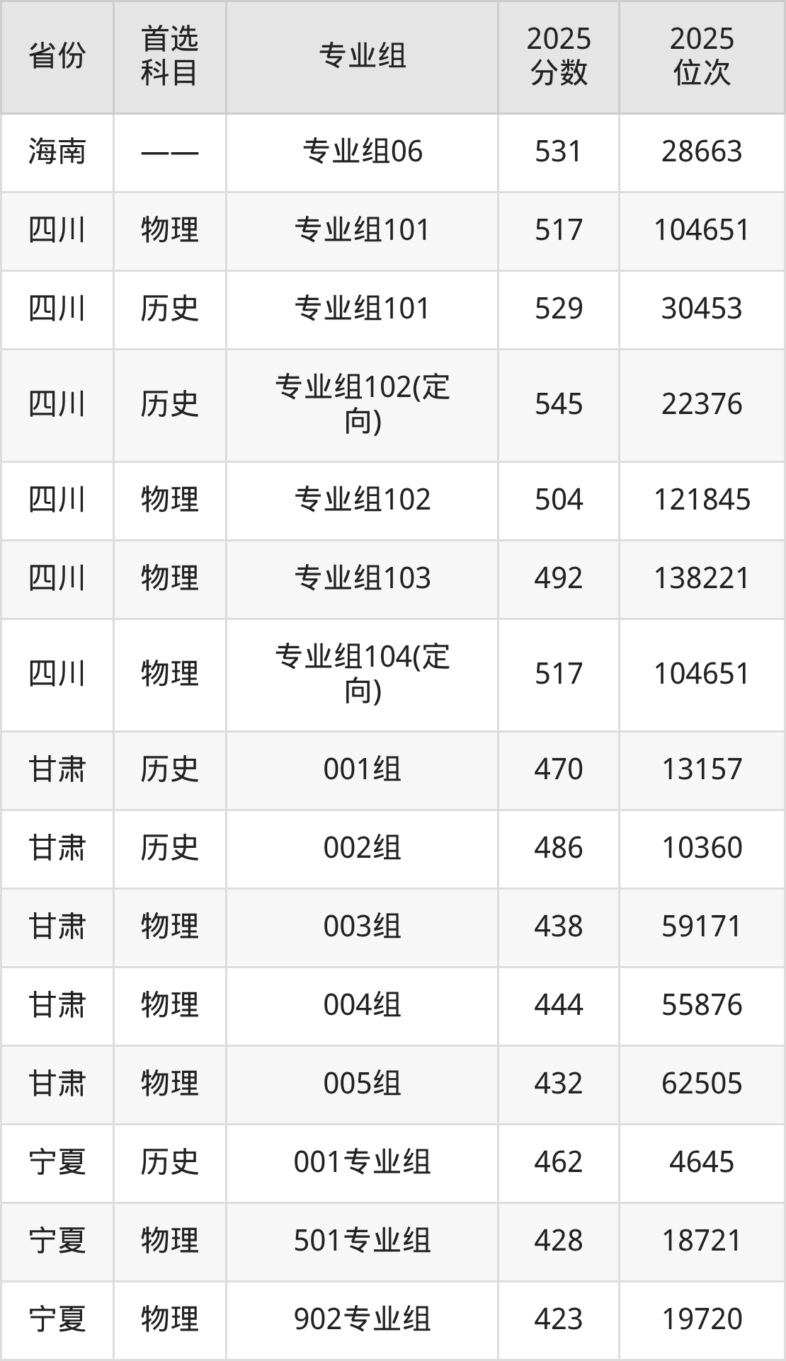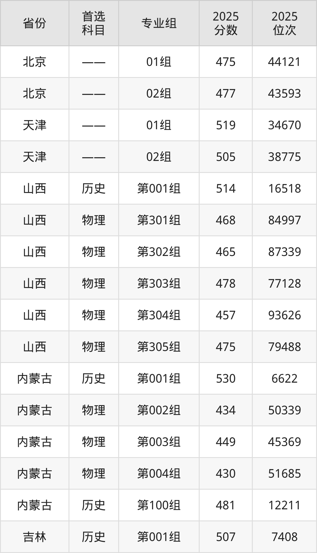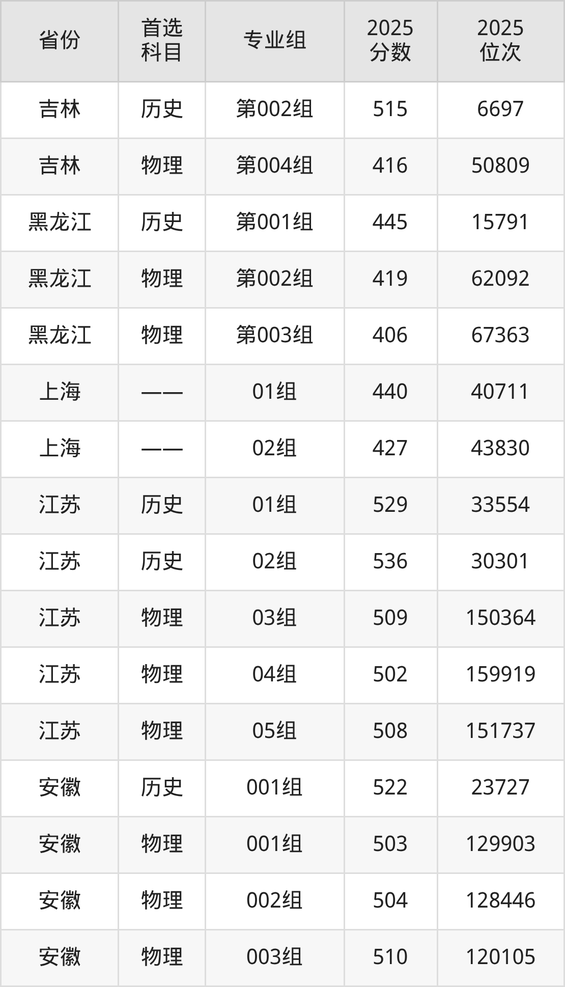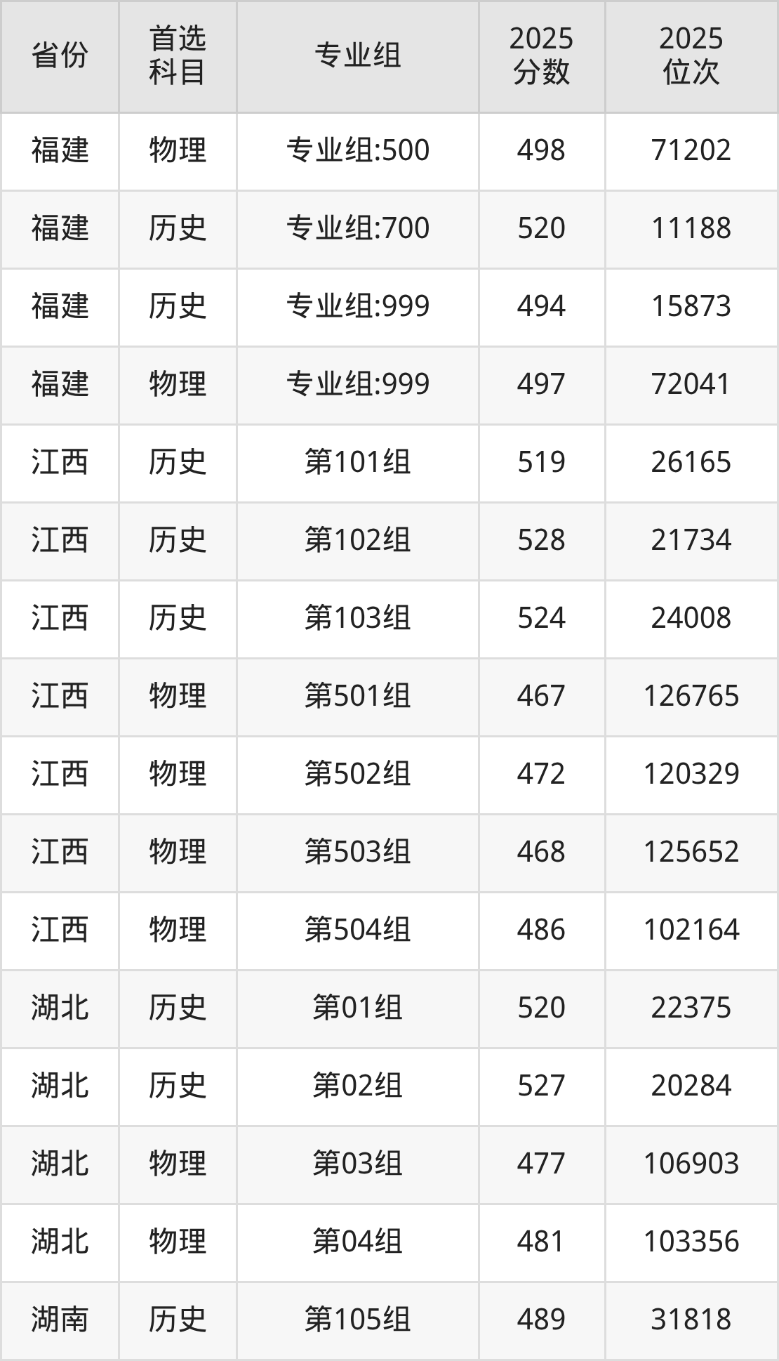 因为大部分地区目前只公布了院校(专业组)分数线,为了方便2026年考生参考,本文就整理出上饶师范学院在全国各省不同科类的最低分: