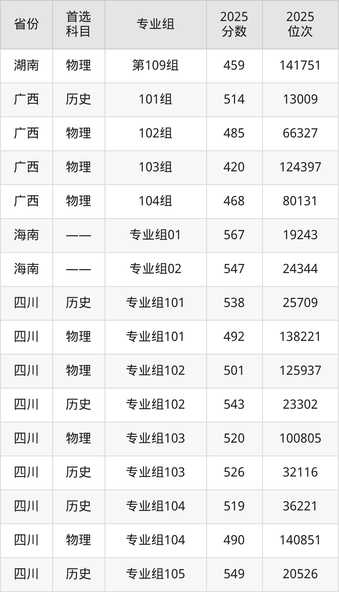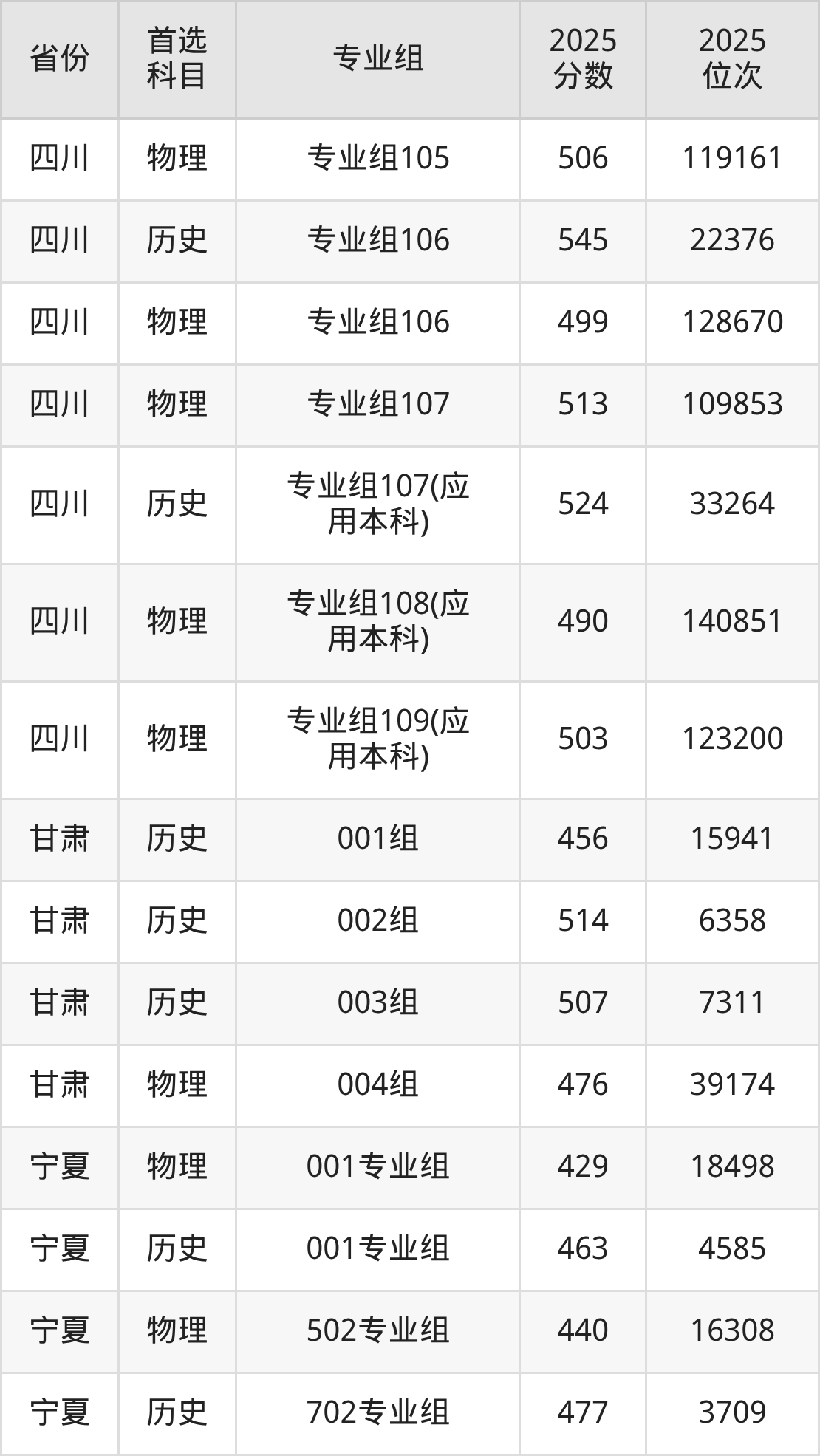 因为大部分地区目前只公布了院校(专业组)分数线,为了方便2026年考生参考,本文就整理出绵阳师范学院在全国各省不同科类的最低分: