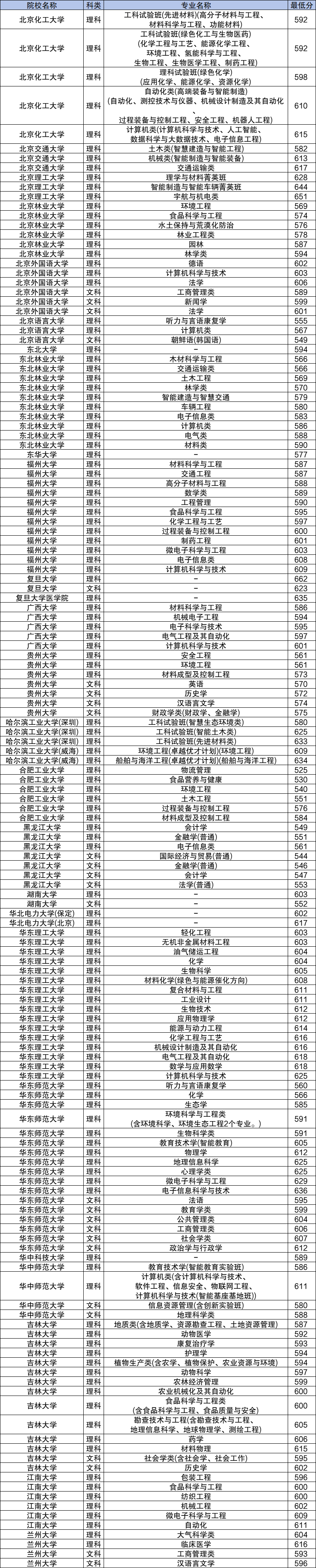2024年高校专项计划各个大学分数线河南省一览表如下: