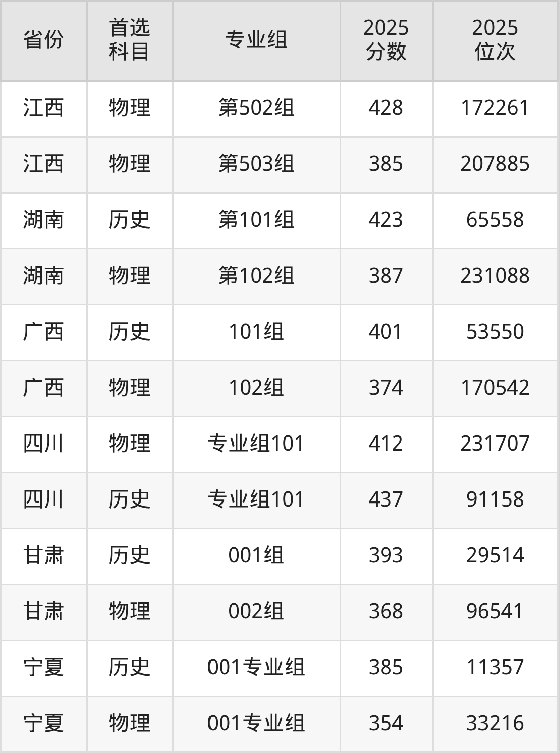因为大部分地区目前只公布了院校(专业组)分数线,为了方便2026年考生参考,本文就整理出承德护理职业学院在全国各省不同科类的最低分: