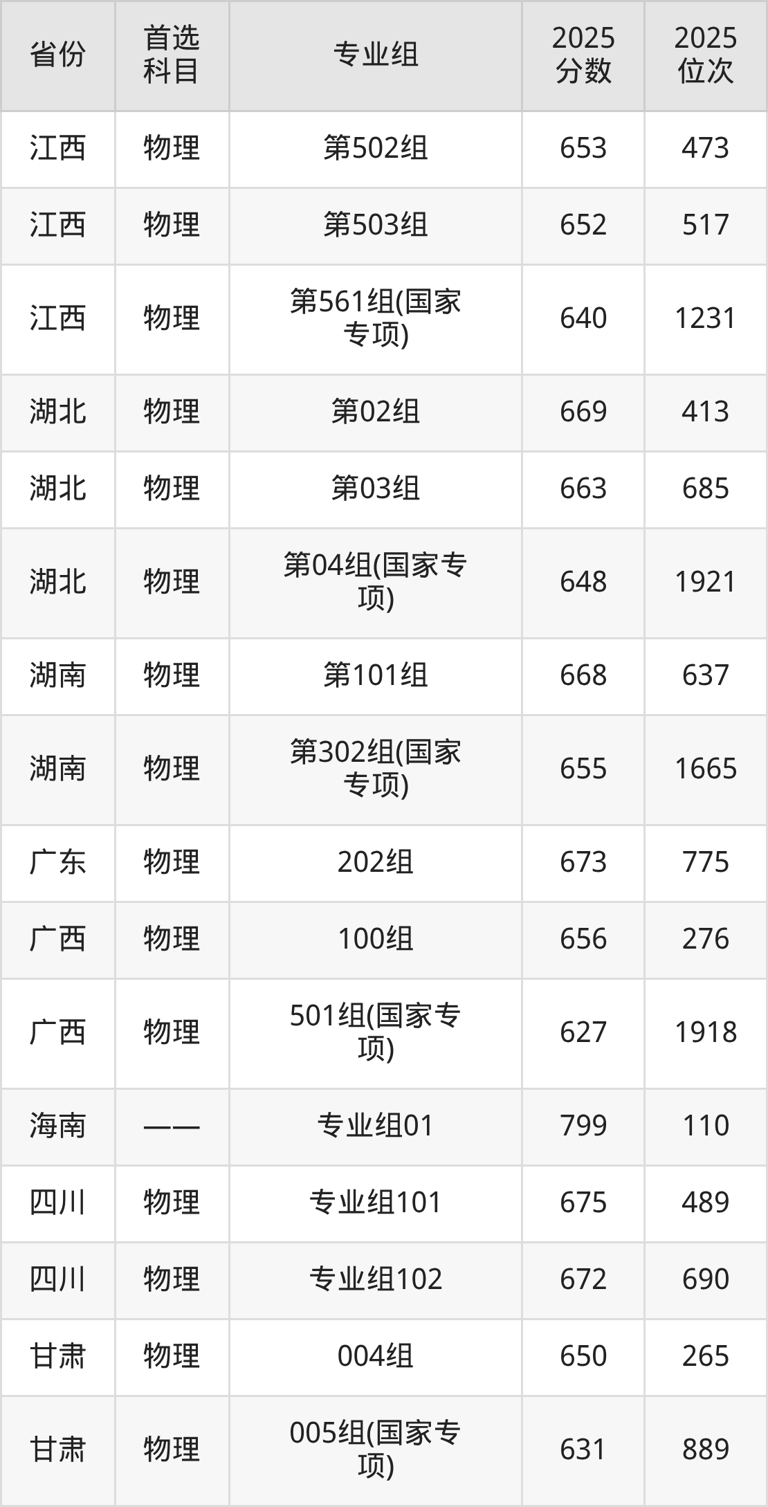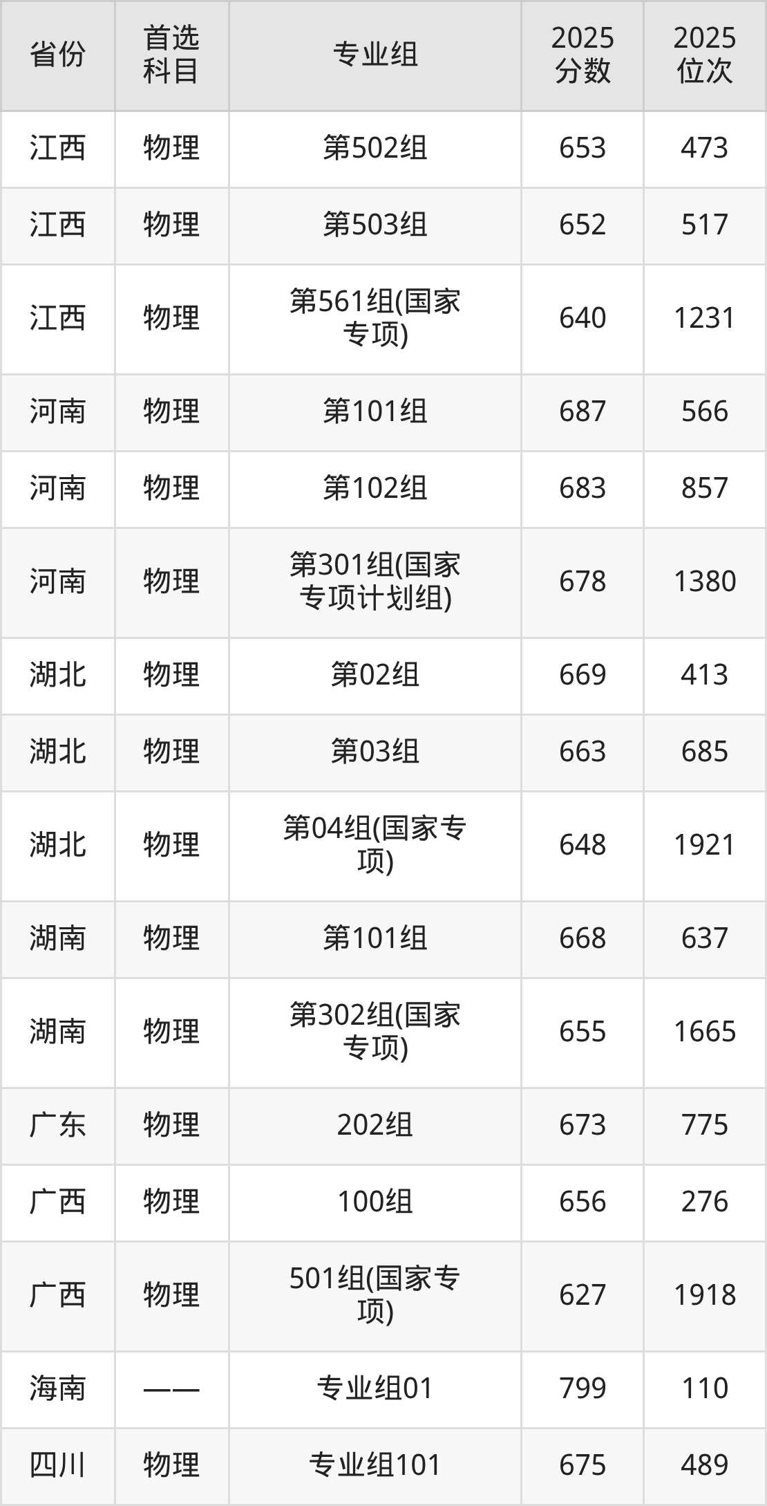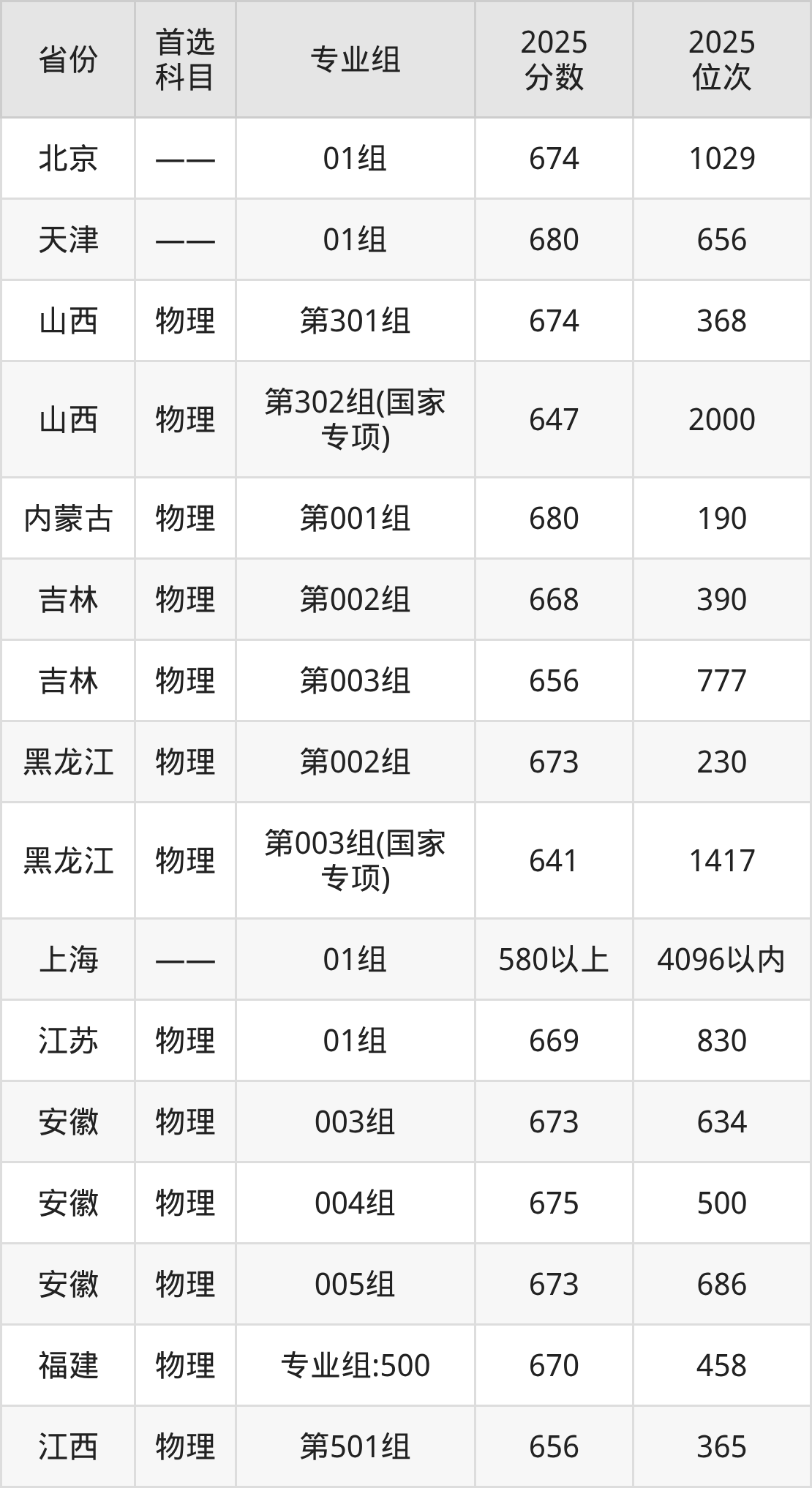因为大部分地区目前只公布了院校(专业组)分数线,为了方便2026年考生参考,本文就整理出中国科学技术大学在全国各省不同科类的最低分: