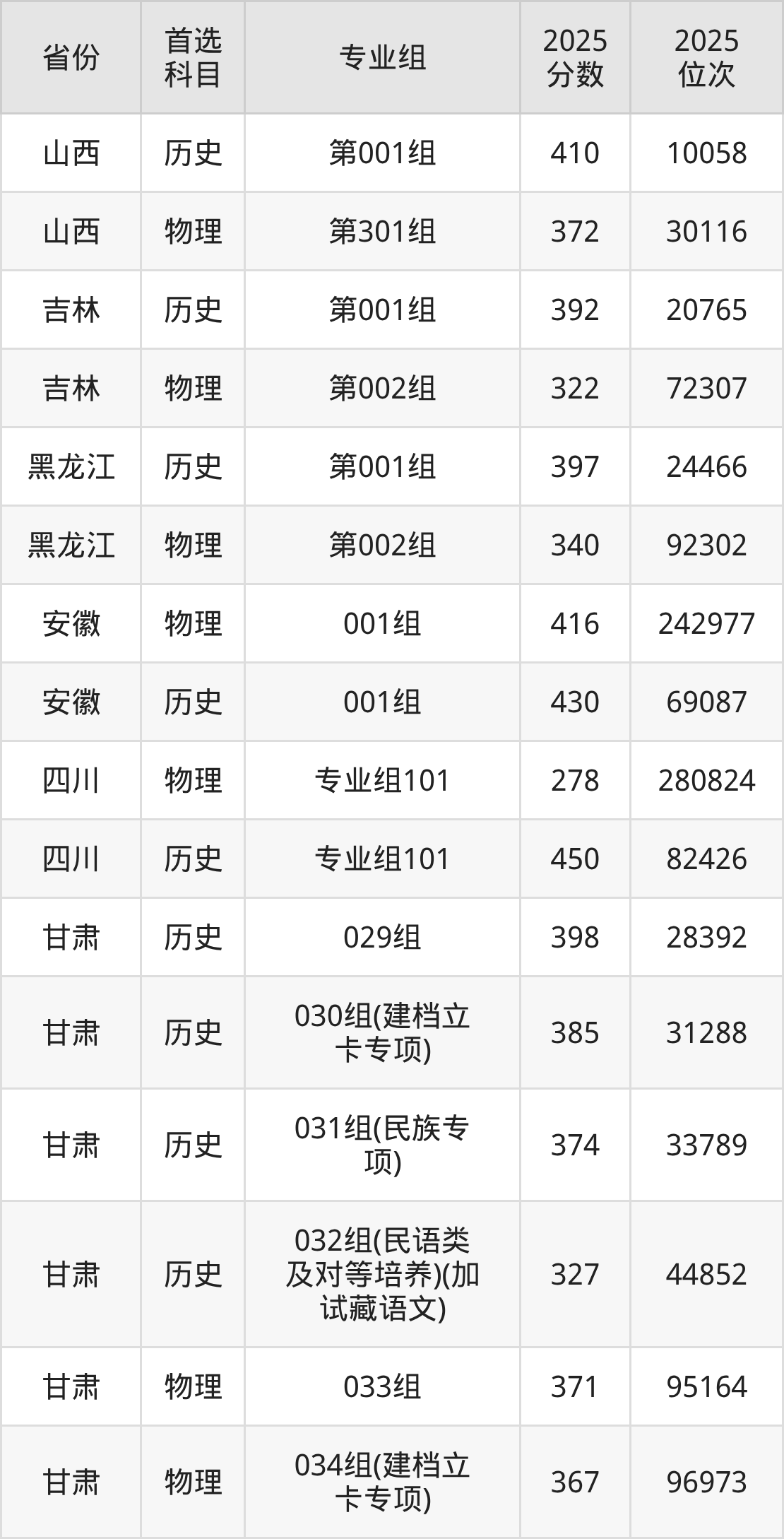 因为大部分地区目前只公布了院校(专业组)分数线,为了方便2026年考生参考,本文就整理出甘肃卫生职业学院在全国各省不同科类的最低分: