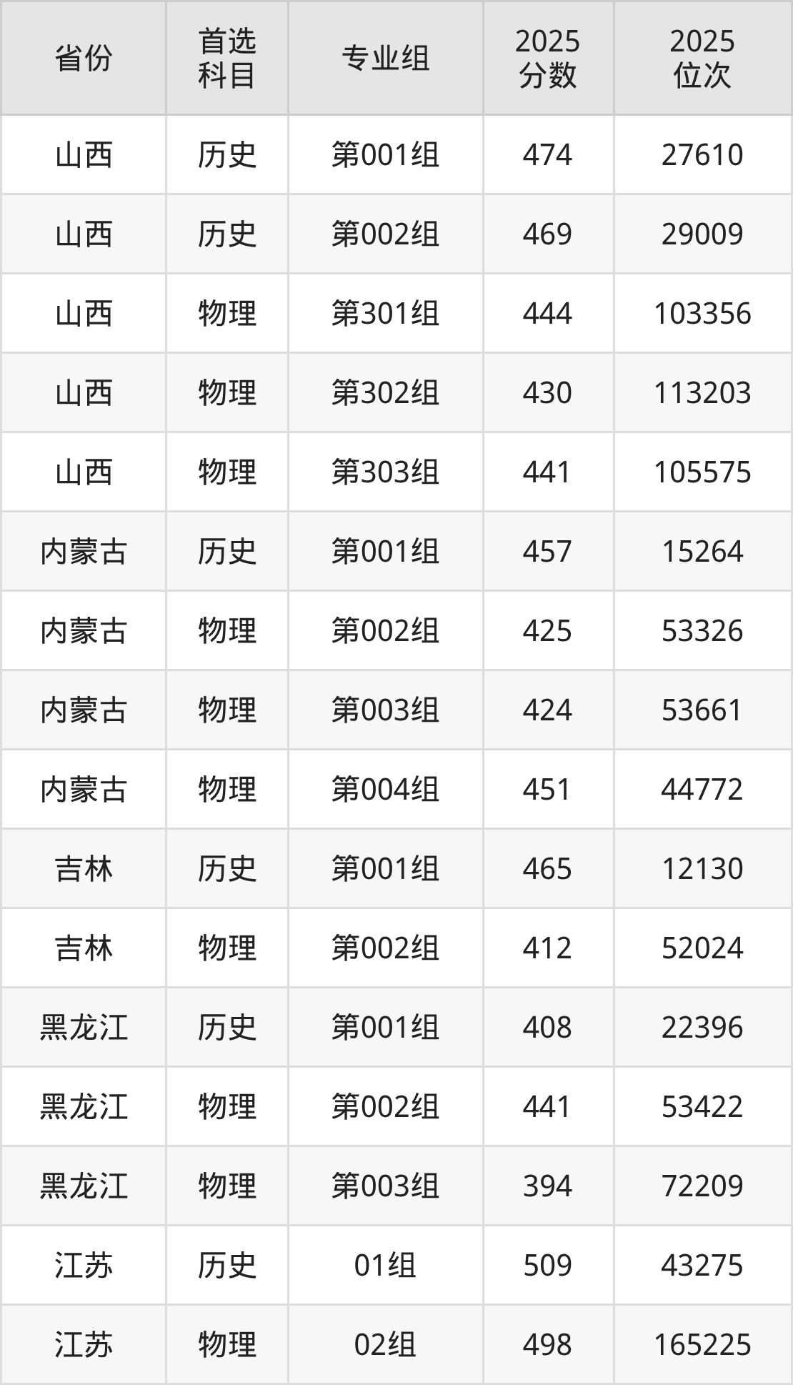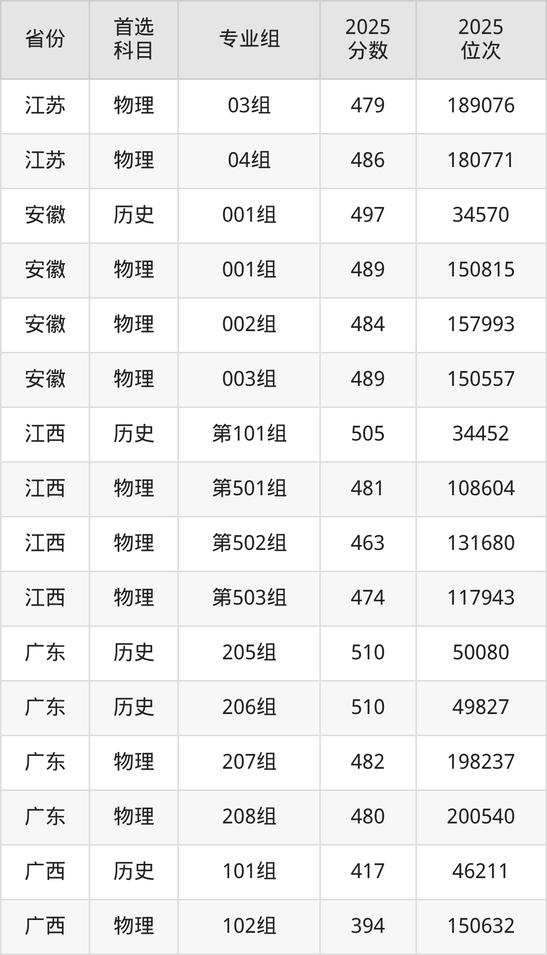 因为大部分地区目前只公布了院校(专业组)分数线,为了方便2026年考生参考,本文就整理出中国矿业大学徐海学院在全国各省不同科类的最低分: