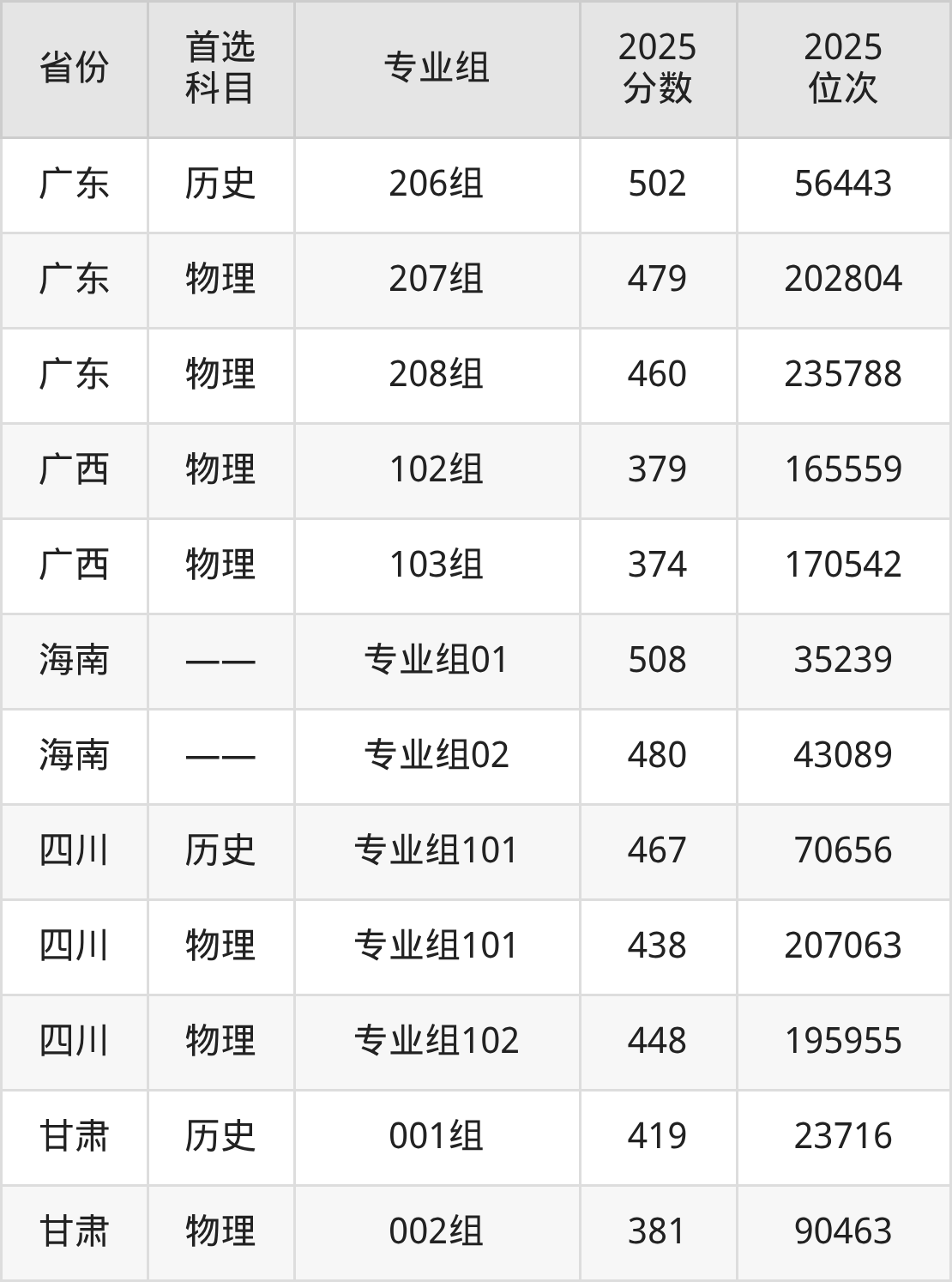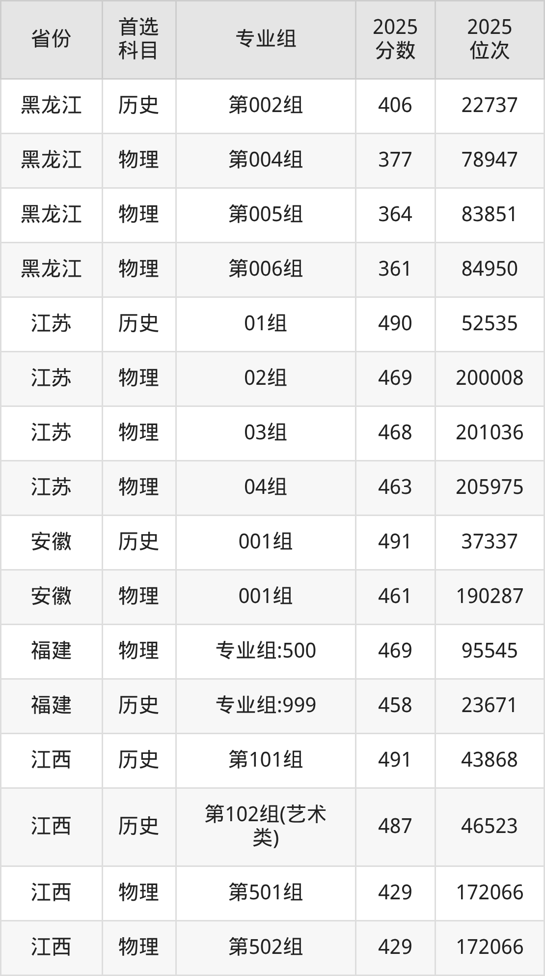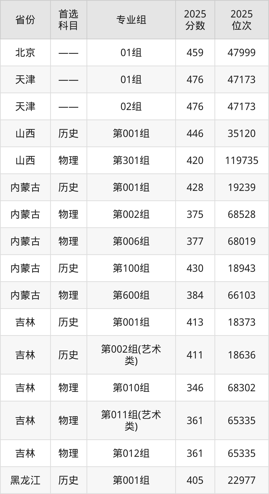 因为大部分地区目前只公布了院校(专业组)分数线,为了方便2026年考生参考,本文就整理出长春人文学院在全国各省不同科类的最低分: