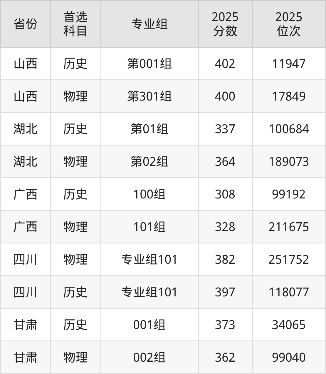 因为大部分地区目前只公布了院校(专业组)分数线,为了方便2026年考生参考,本文就整理出重庆公共运输职业学院在全国各省不同科类的最低分: