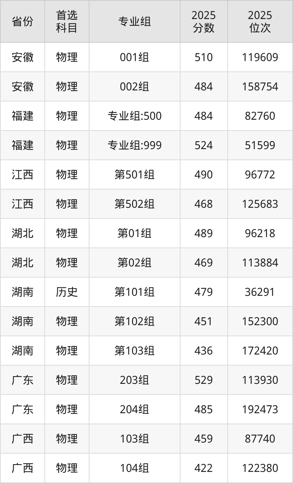 因为大部分地区目前只公布了院校(专业组)分数线,为了方便2026年考生参考,本文就整理出湖南中医药大学湘杏学院在全国各省不同科类的最低分: