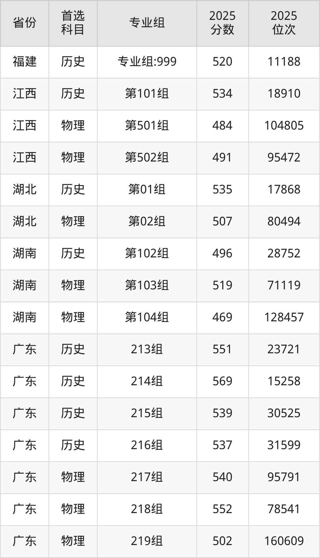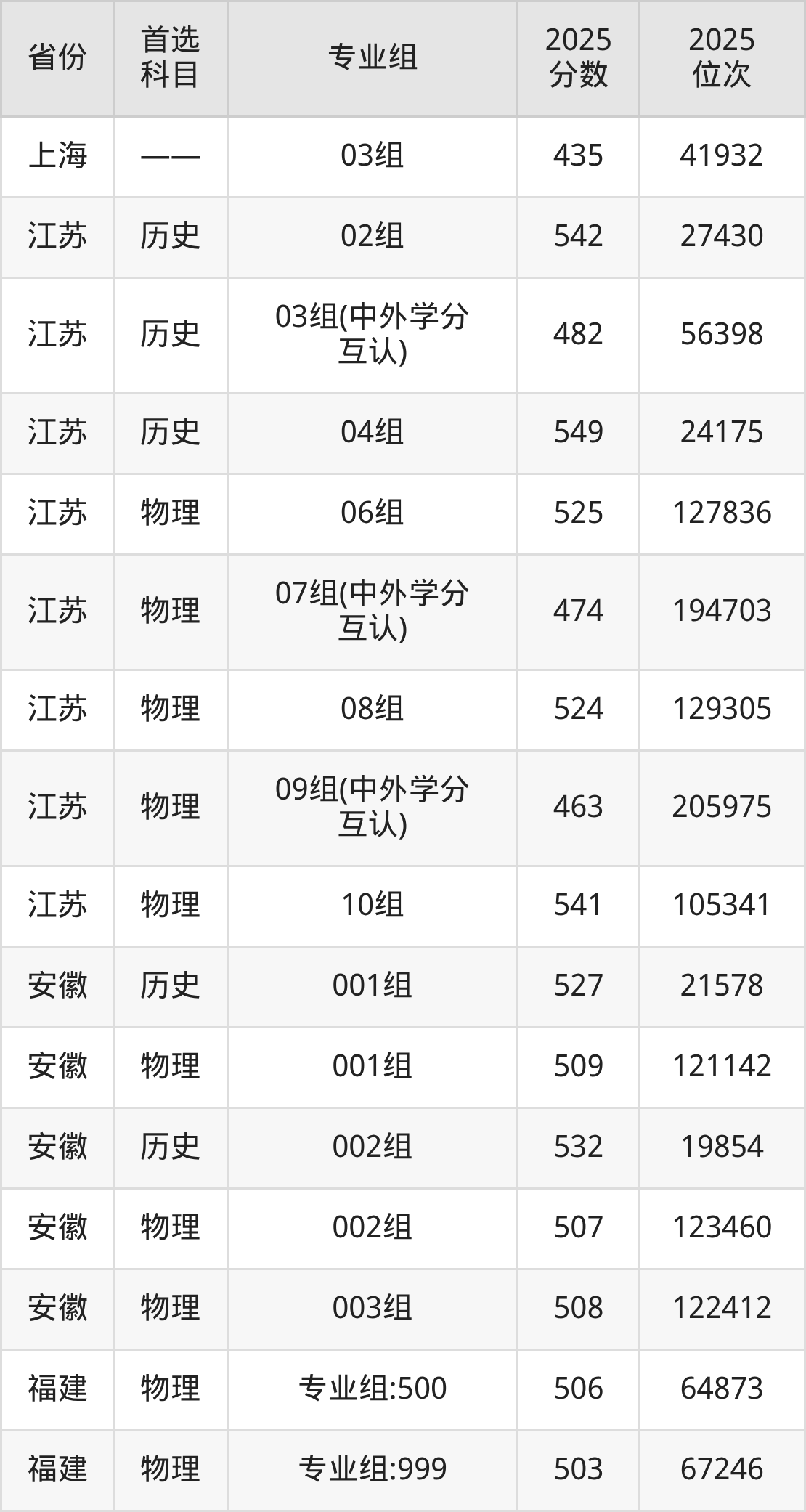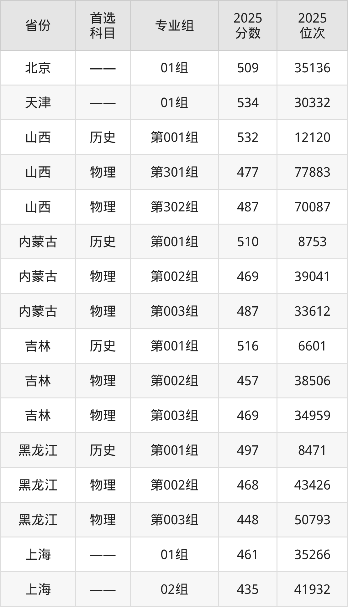 因为大部分地区目前只公布了院校(专业组)分数线,为了方便2026年考生参考,本文就整理出南京特殊教育师范学院在全国各省不同科类的最低分: