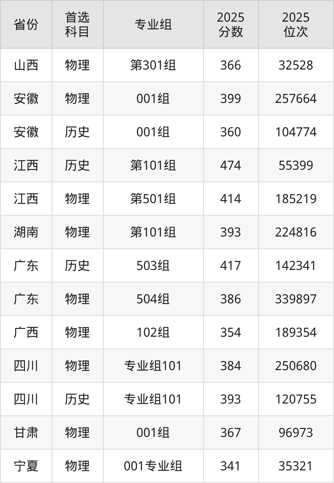 因为大部分地区目前只公布了院校(专业组)分数线,为了方便2026年考生参考,本文就整理出福建水利电力职业技术学院在全国各省不同科类的最低分: