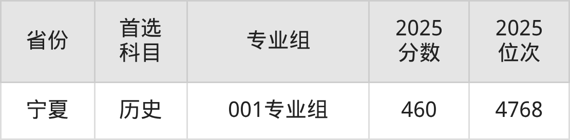 22.宁夏:历史类460分、4768位