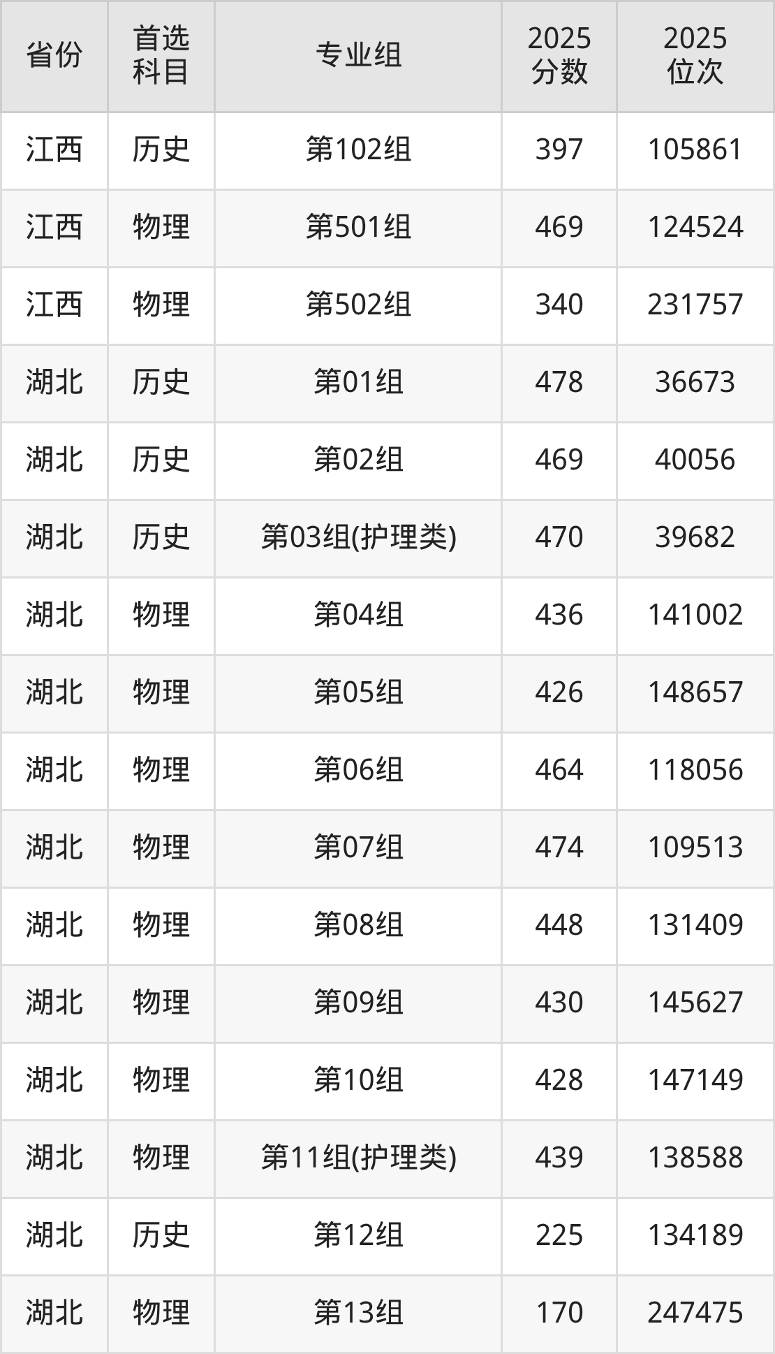 因为大部分地区目前只公布了院校(专业组)分数线,为了方便2026年考生参考,本文就整理出湖北恩施学院在全国各省不同科类的最低分: