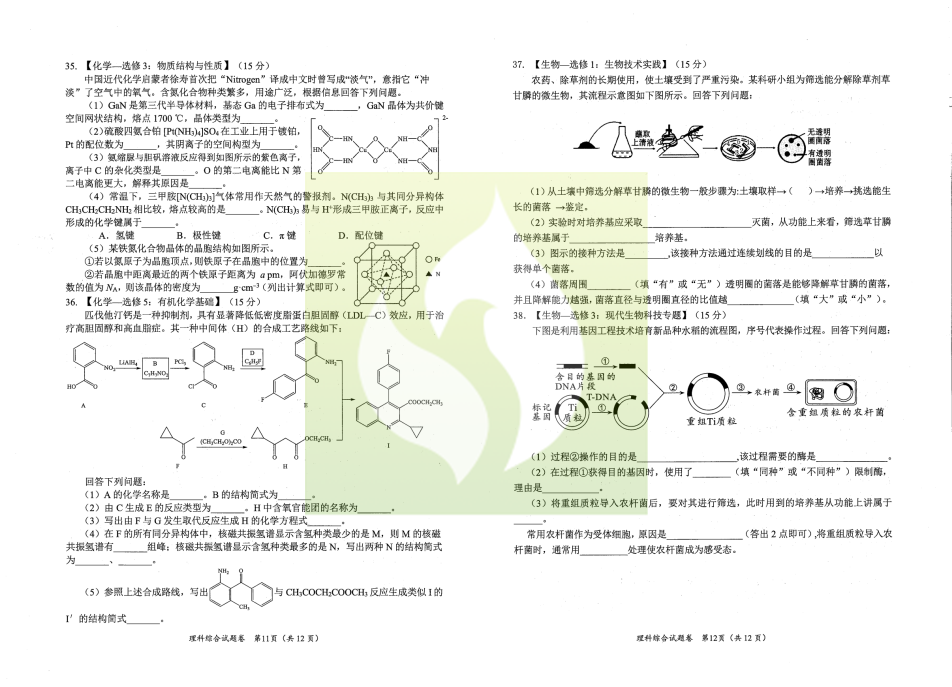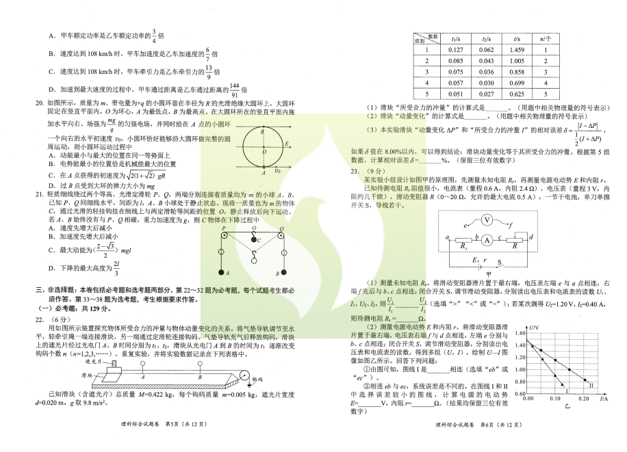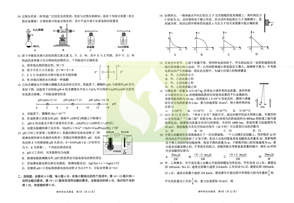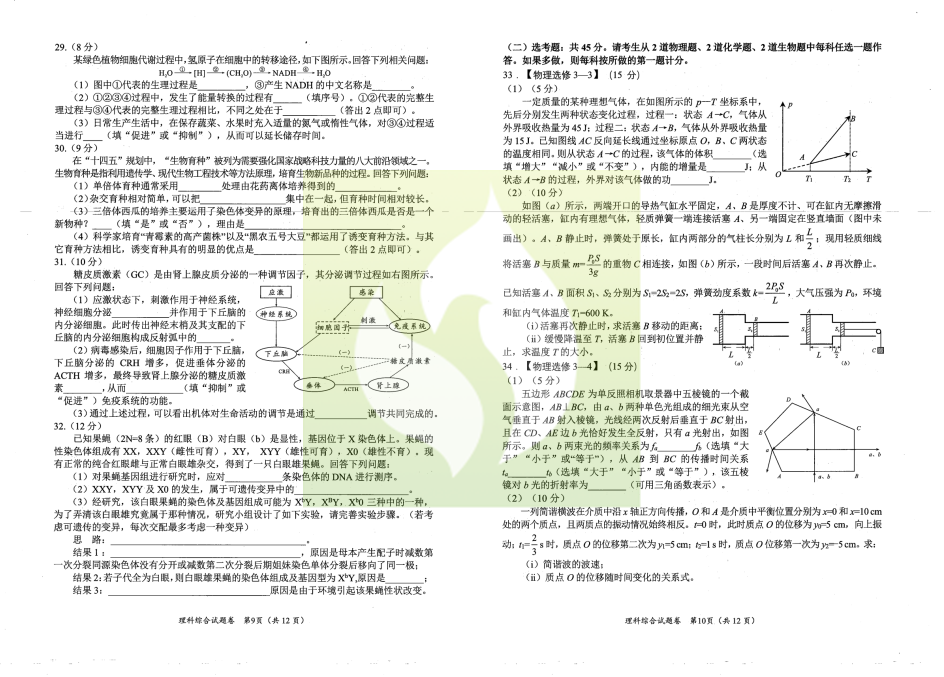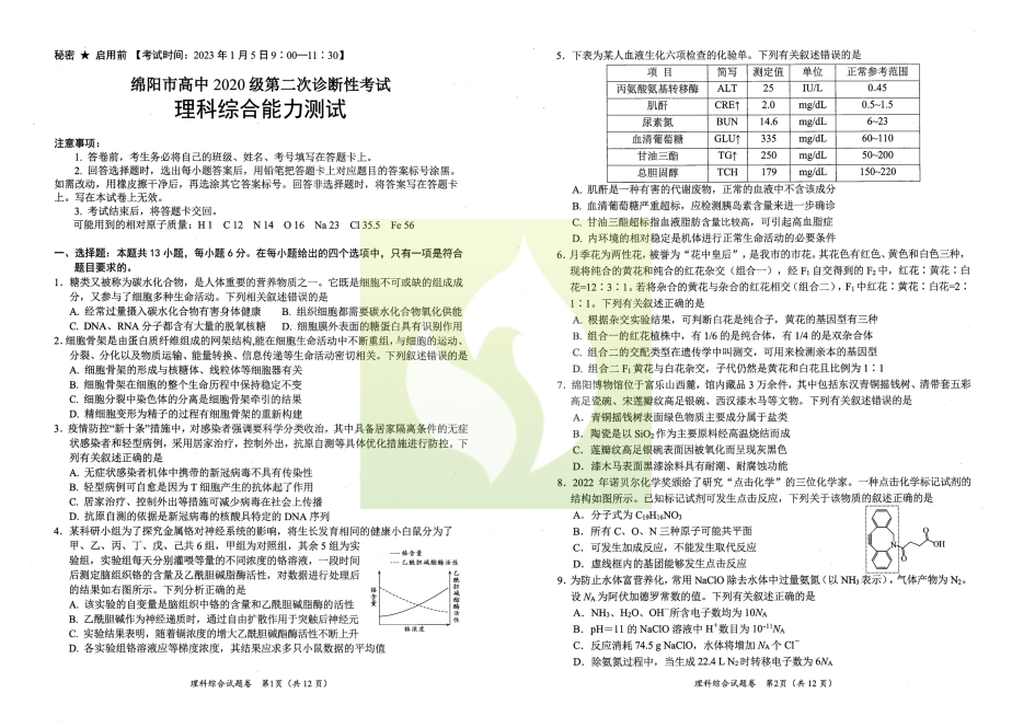一、2023绵阳二诊理科综合试卷