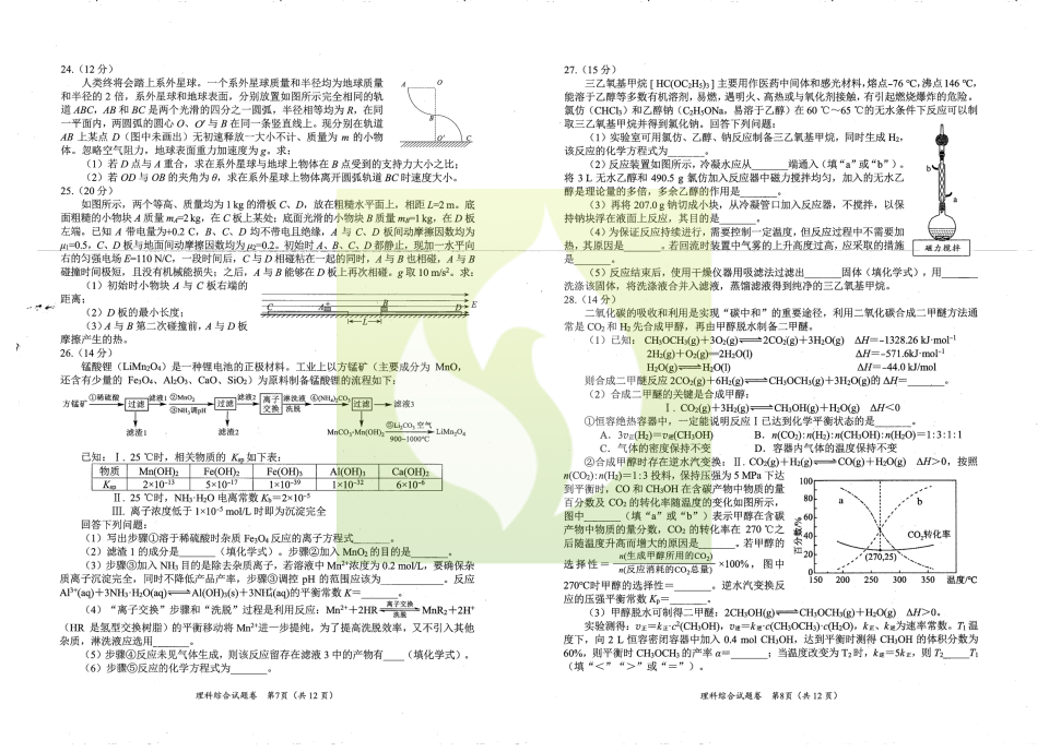 二、2023绵阳二诊理科综合参考答案