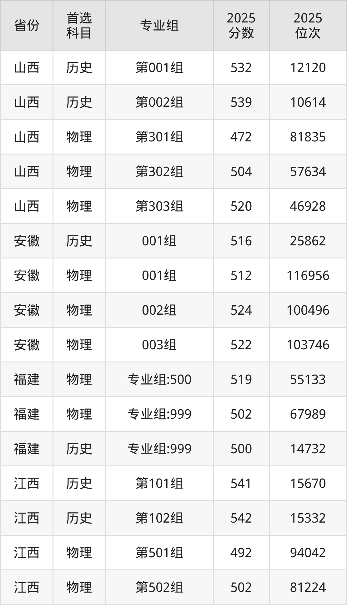 5.江西:历史类541分、15670位,物理类479分、110995位