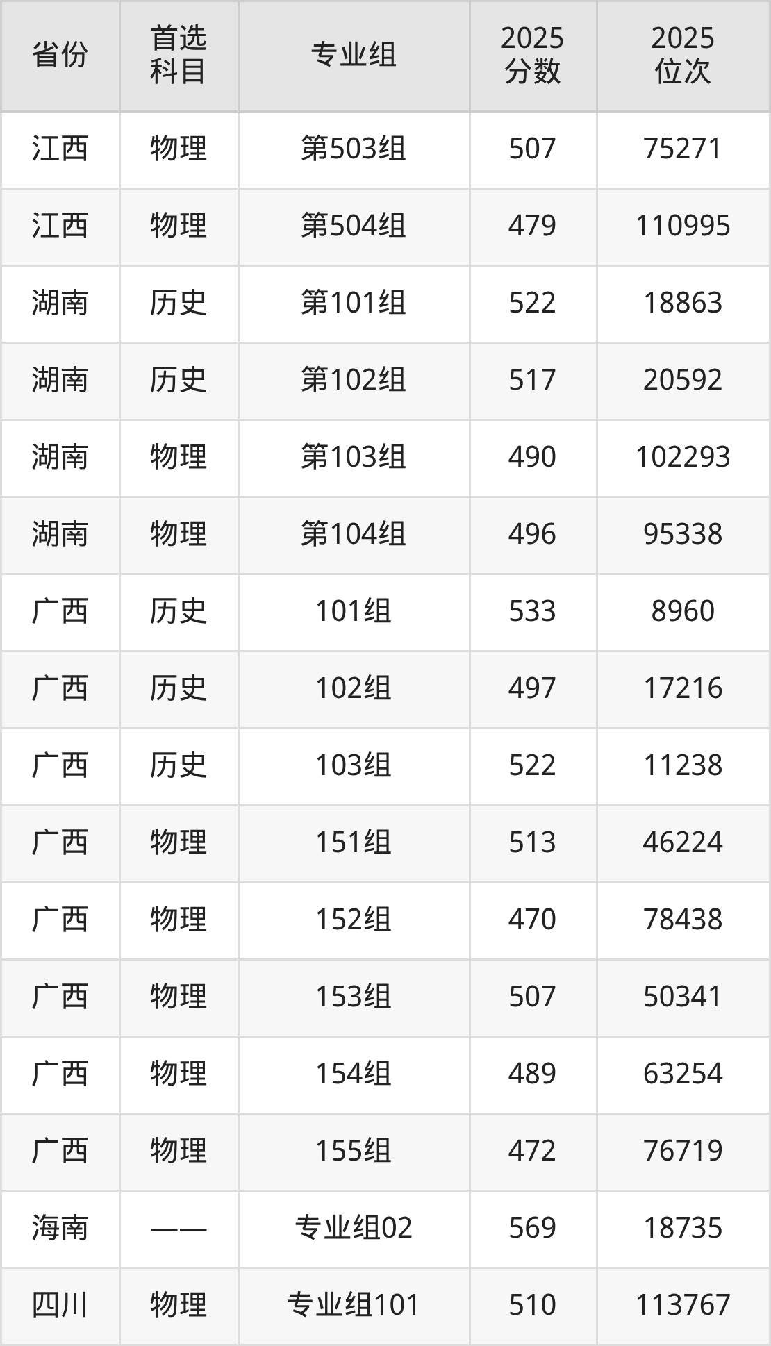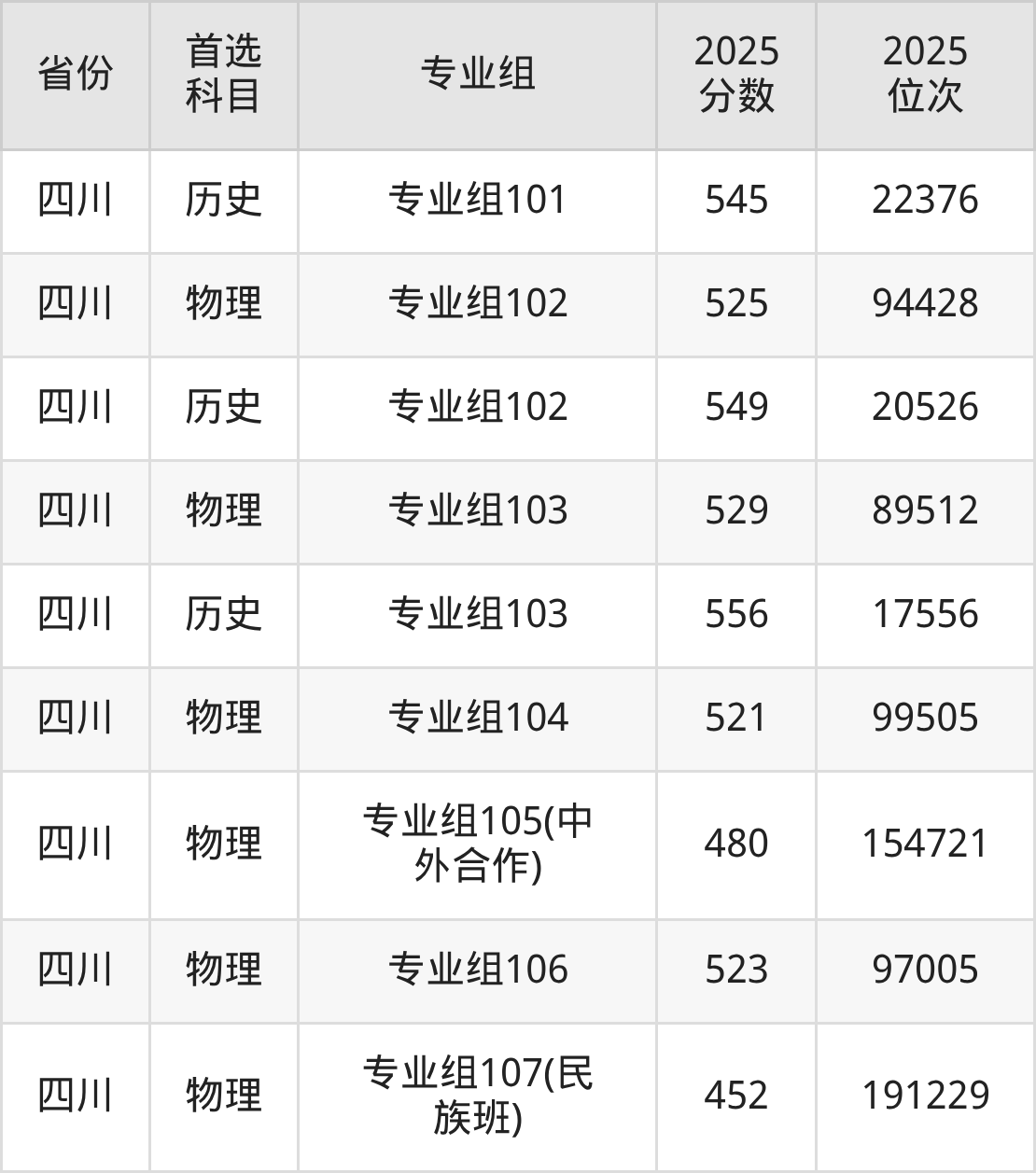 11.四川:历史类545分、22376位,物理类452分、191229位
