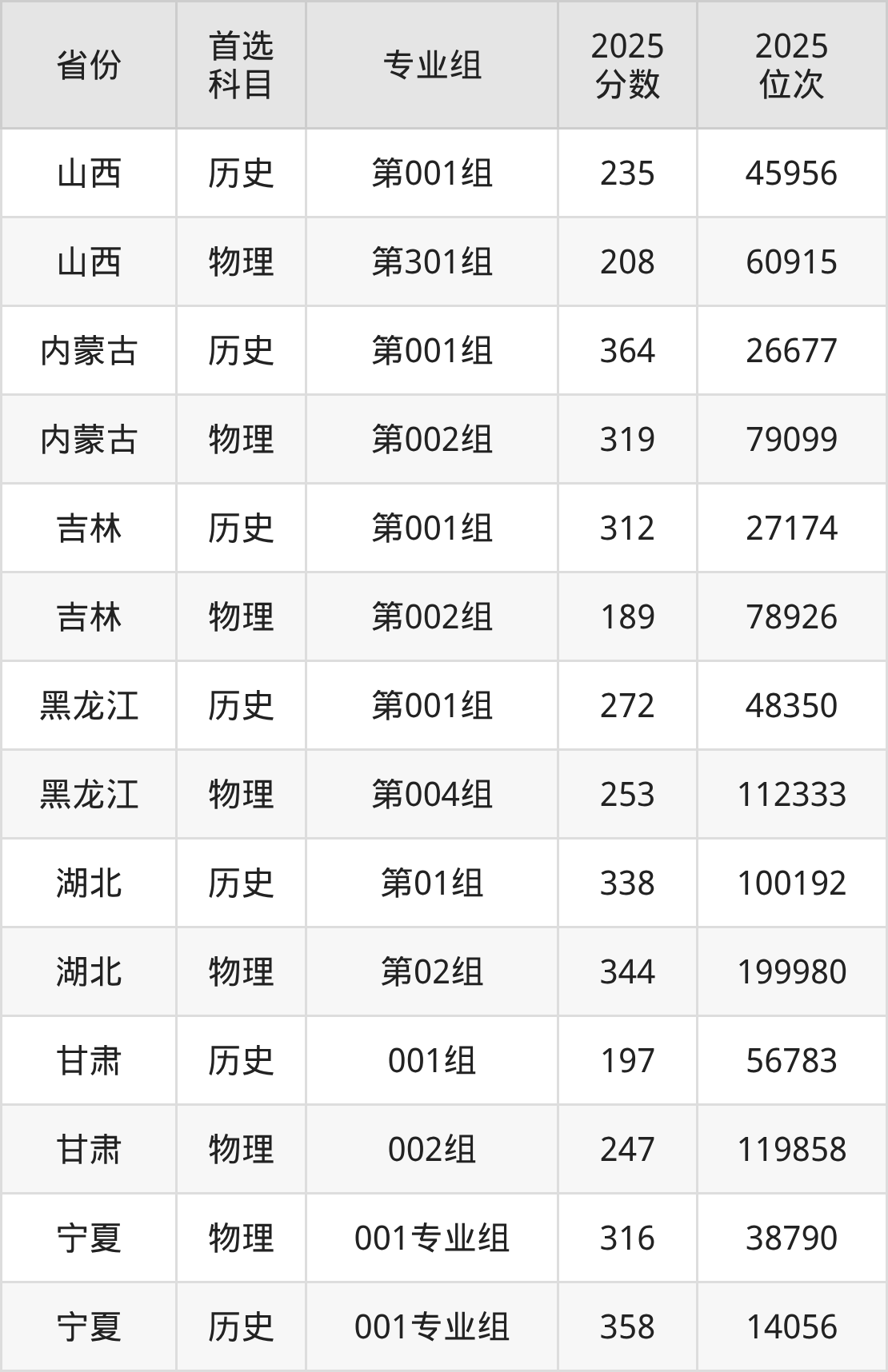 10.甘肃:历史类197分、56783位,物理类247分、119858位