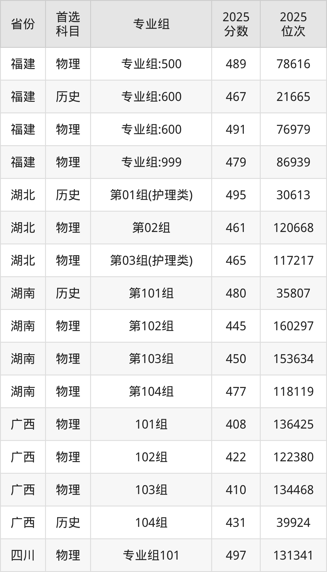 2.护理学:物理类500分、62078位,历史类498分、18234位