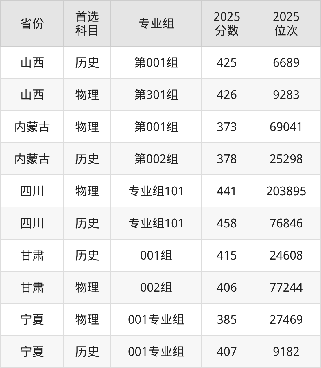 因为大部分地区目前只公布了院校(专业组)分数线,为了方便2026年考生参考,本文就整理出陕西工业职业技术大学在全国各省不同科类的最低分: