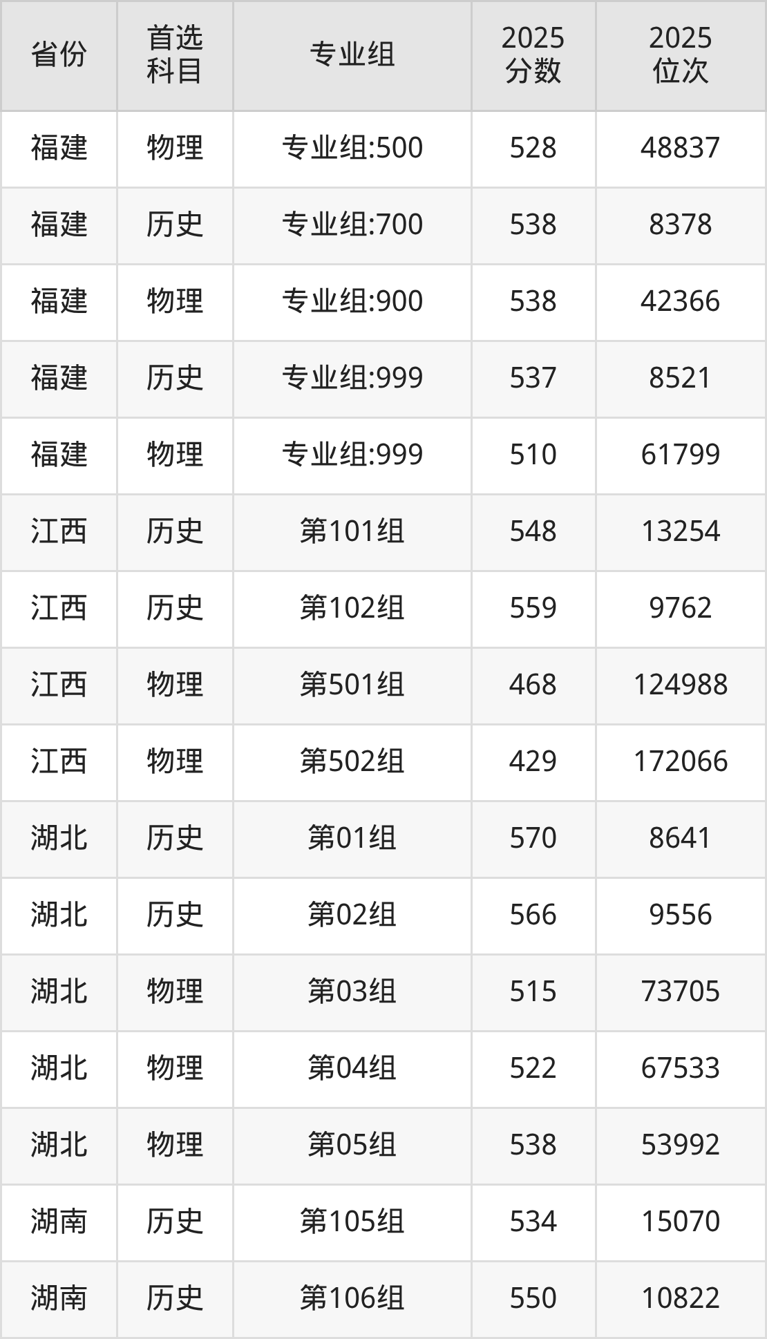 因为大部分地区目前只公布了院校(专业组)分数线,为了方便2026年考生参考,本文就整理出曲阜师范大学在全国各省不同科类的最低分: