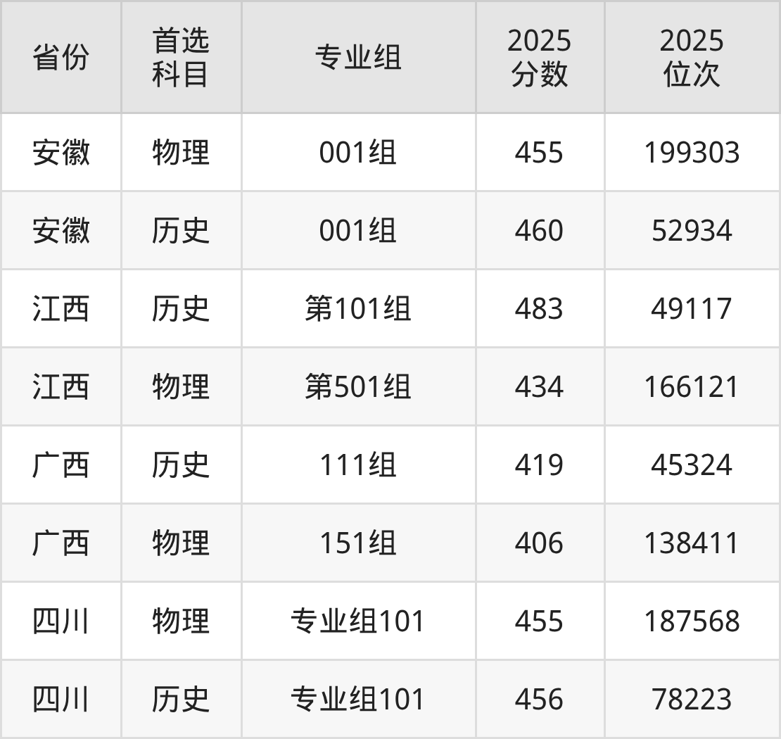 因为大部分地区目前只公布了院校(专业组)分数线,为了方便2026年考生参考,本文就整理出杭州科技职业技术学院在全国各省不同科类的最低分: