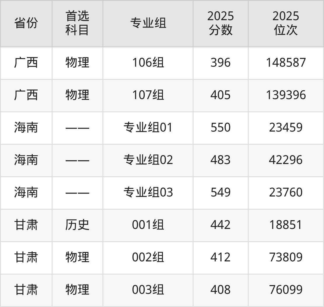 因为大部分地区目前只公布了院校(专业组)分数线,为了方便2026年考生参考,本文就整理出武汉文理学院在全国各省不同科类的最低分:
