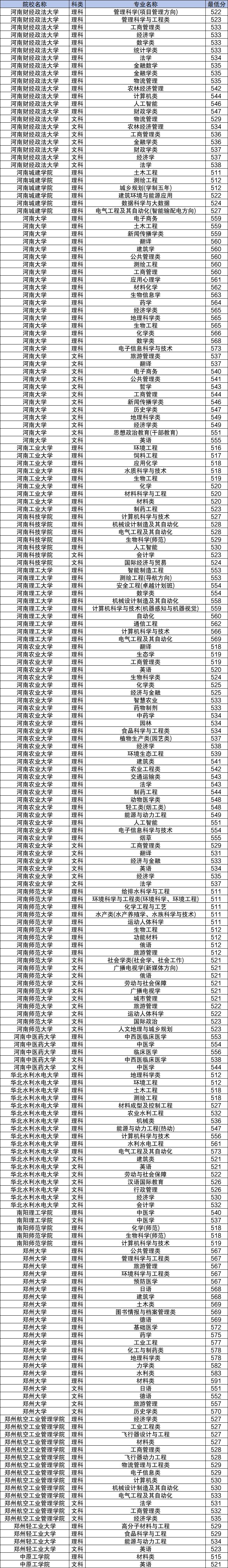 2024年地方专项计划各个大学分数线河南省一览表如下: