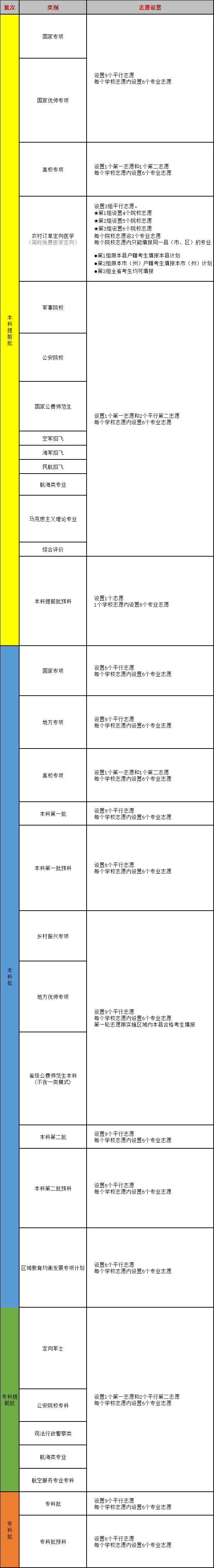 四川高考专科批设置9个平行志愿,每个学校志愿内设置6个专业志愿。