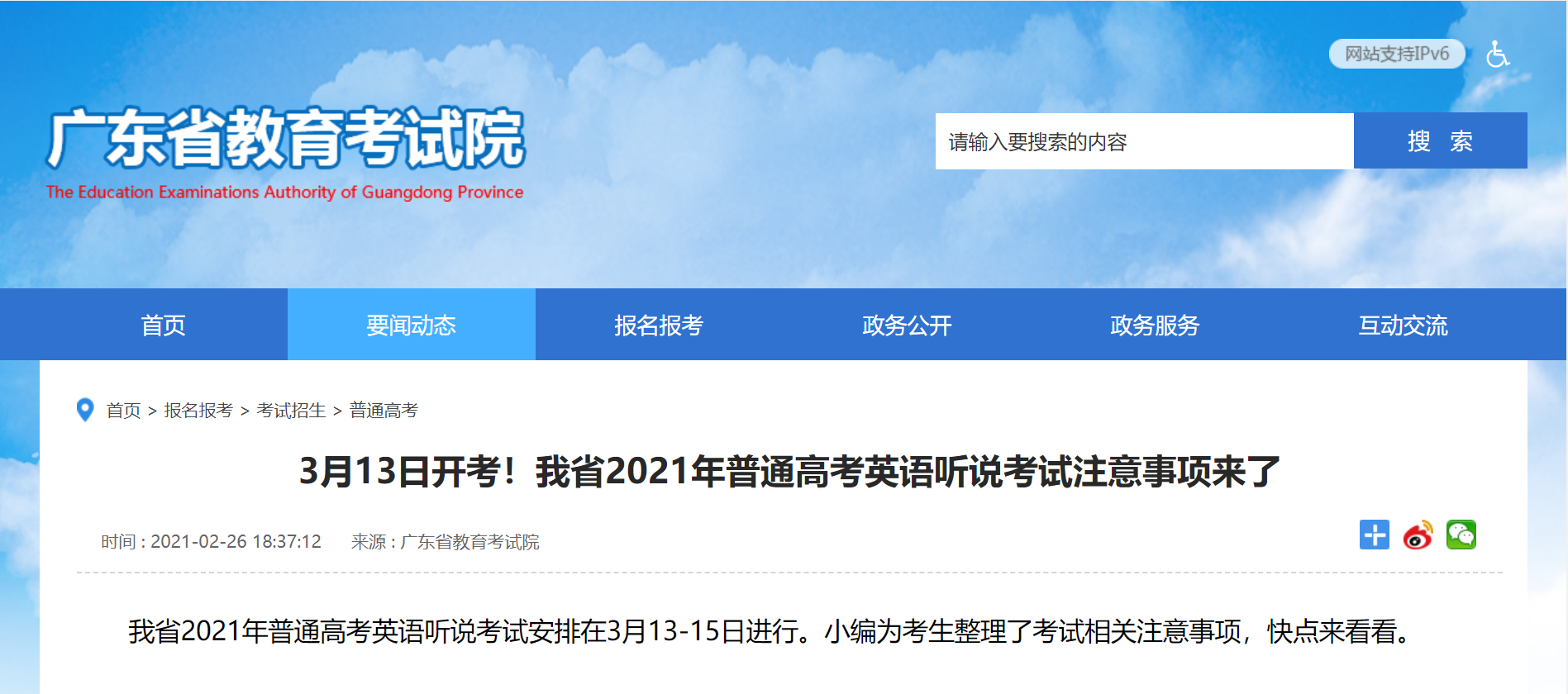 距离2021年高考已经越来越近了,各项关于高考的流程都已经被安排上了。2021年有不少地区将推行新高考模式,并且在不少推行新高考的省份中,对高考英语的考试方式进行了改革。近日广东省考试院发布了2021广东省年普通高考英语听说考试的安排,本文就说说具体情况。