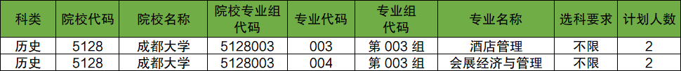 第 003 组:专业组代码为5128003,包含专业酒店管理、会展经济与管理。