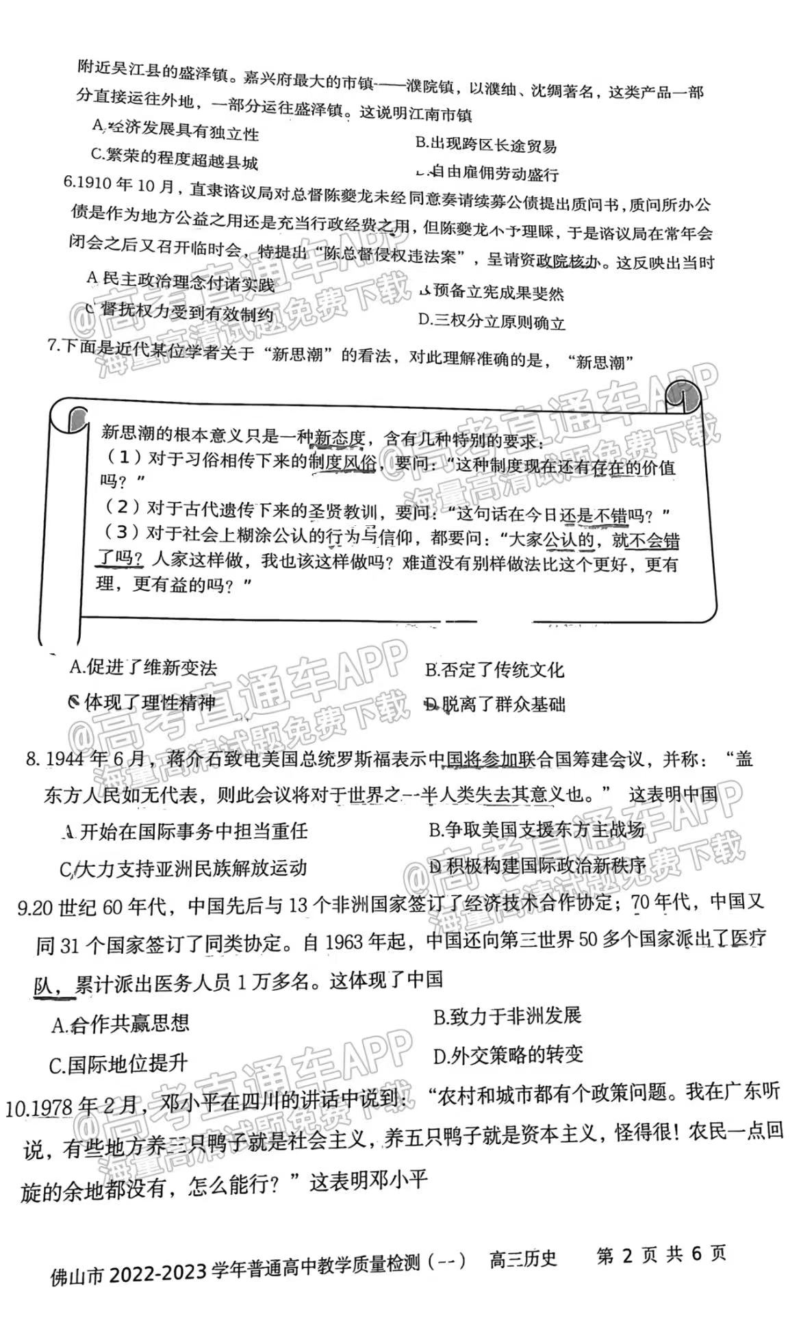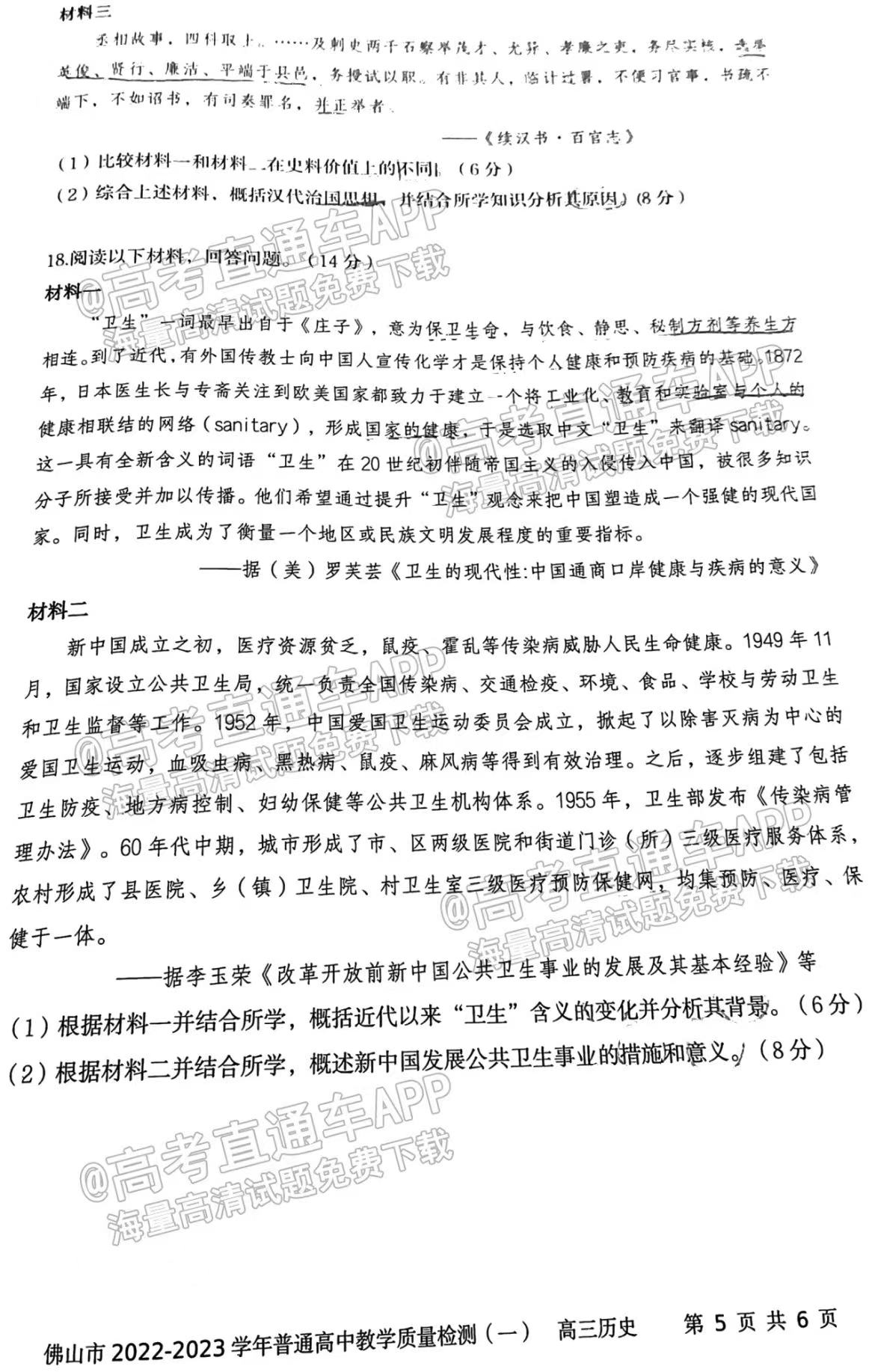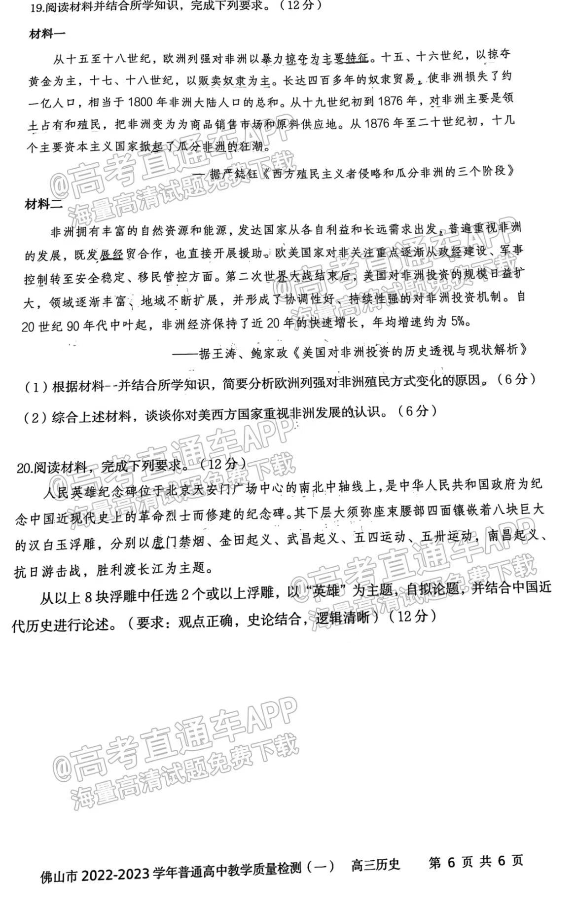 本文将公布2023佛山一模历史试卷及答案汇总,帮助考生查看分数,找寻不足,不断进步,更好的迎接下一次考试,请大家持续关注高考100网站或本文,距离高考还有一百多天的时间,所有的辛苦都会在高考那一刻消失,预祝全国考生高考顺利,圆梦大学。