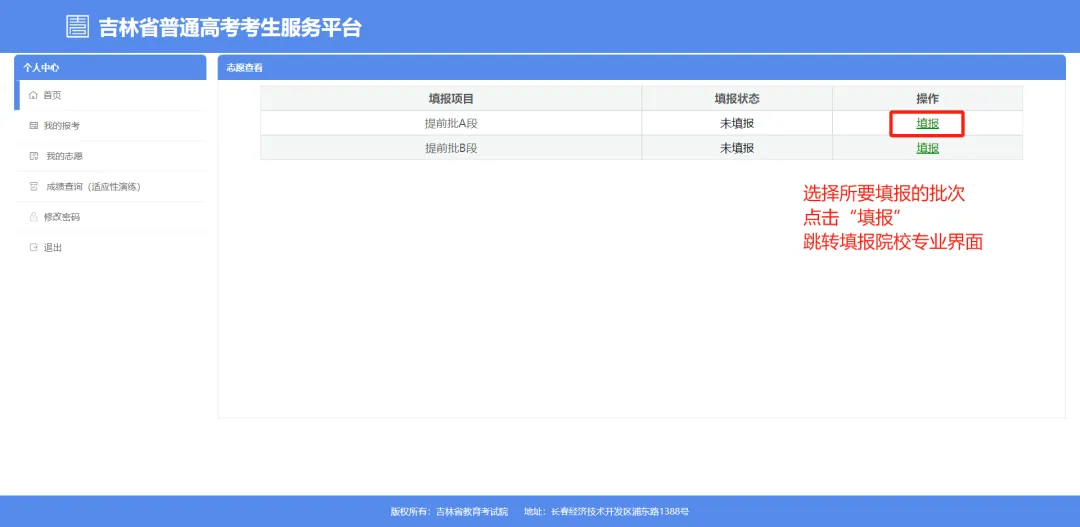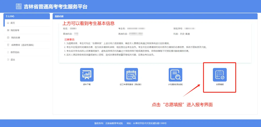 模拟志愿填报直达入口:吉林省普通高考考生服务平台