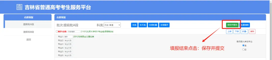 相关批次志愿填报结束后,点击【保存并提交】即可。