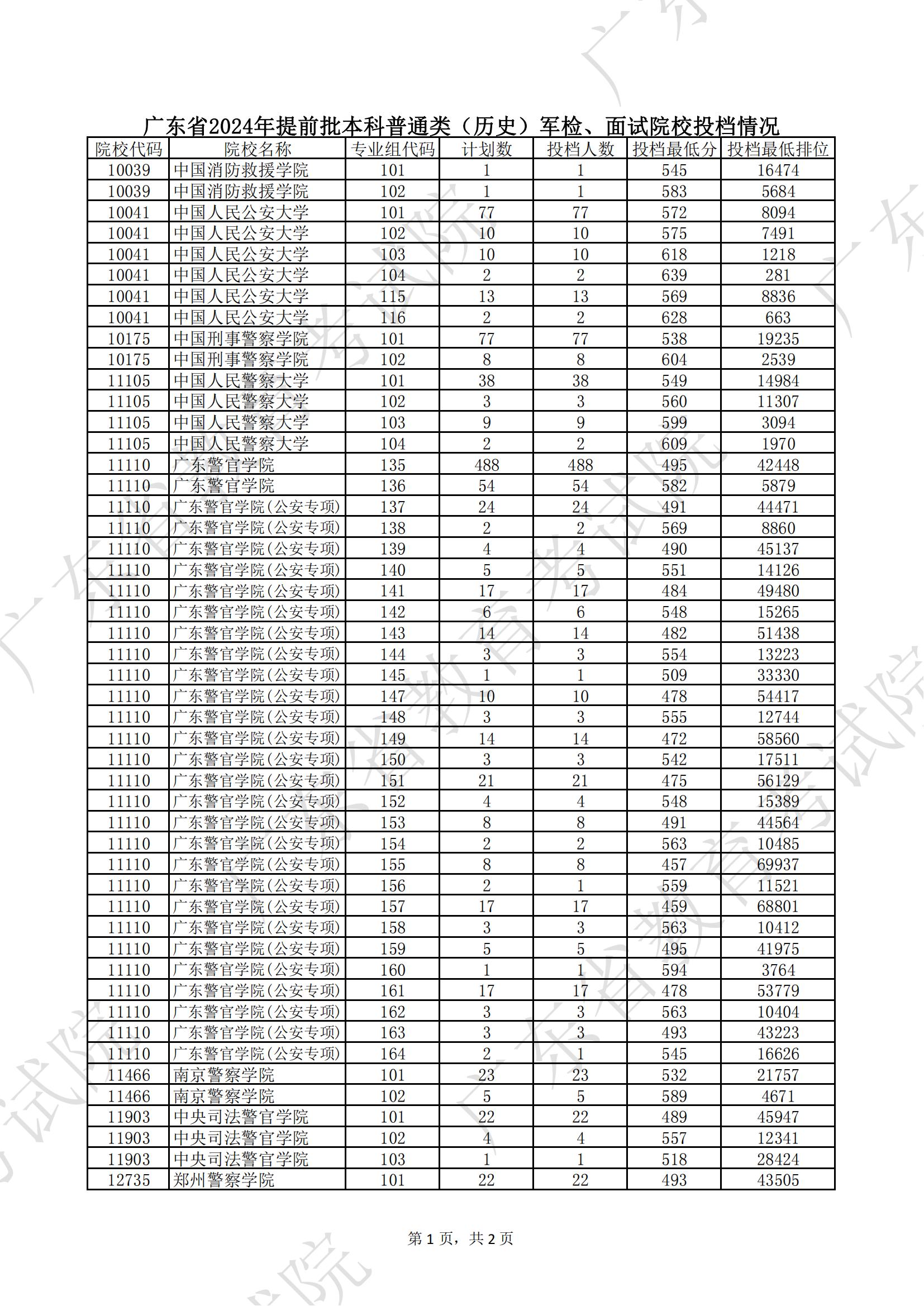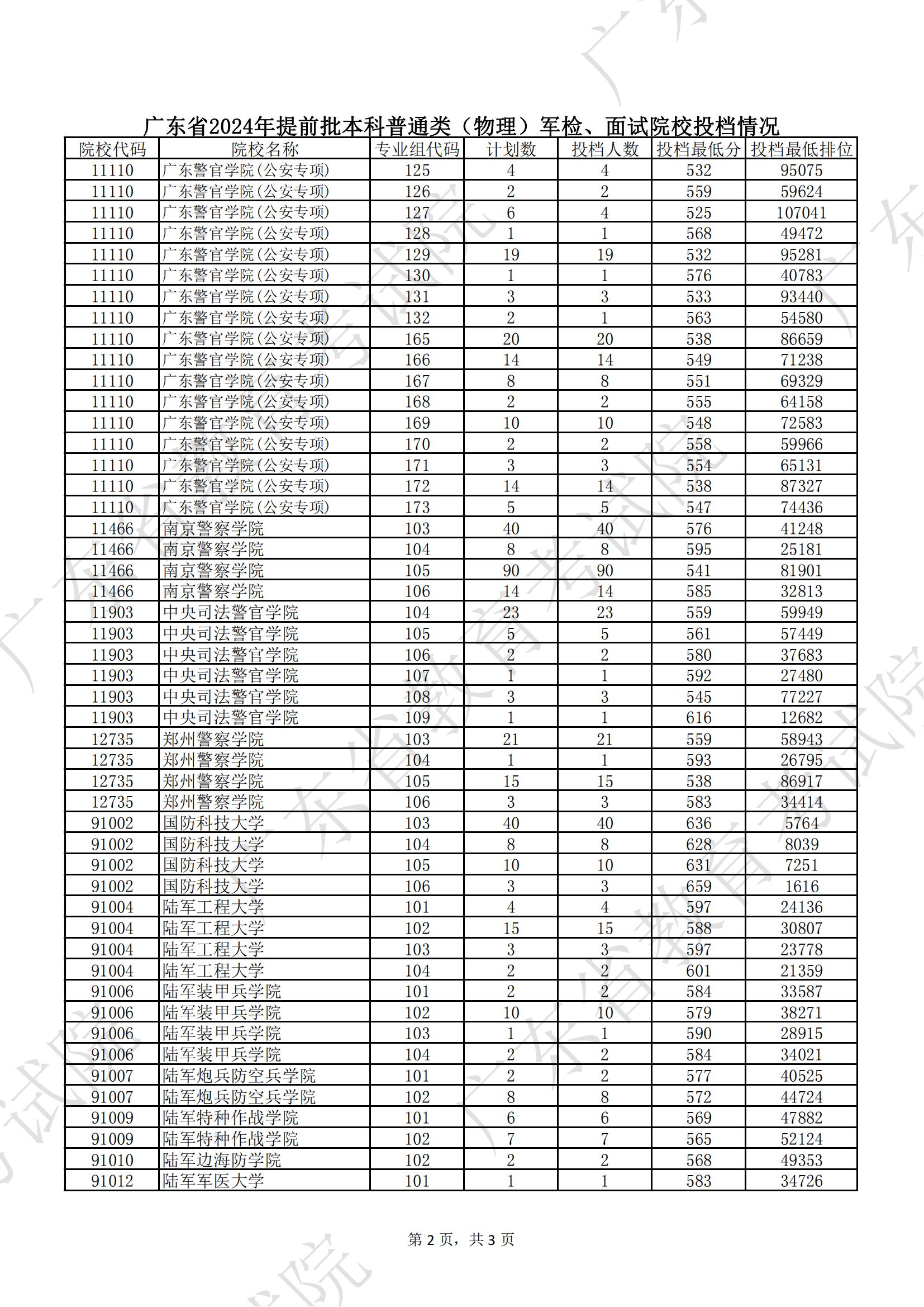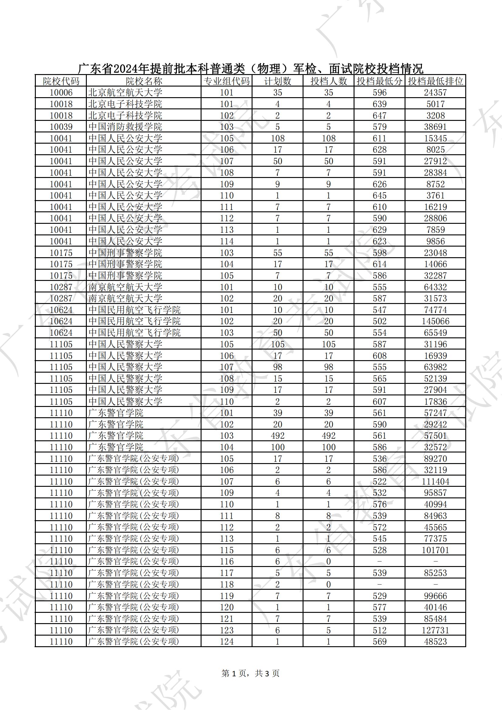 广东2024年高考本科提前批投档线已经公布。在广东首选物理科目高考本科提前批投档中,警校的投档分数线为: