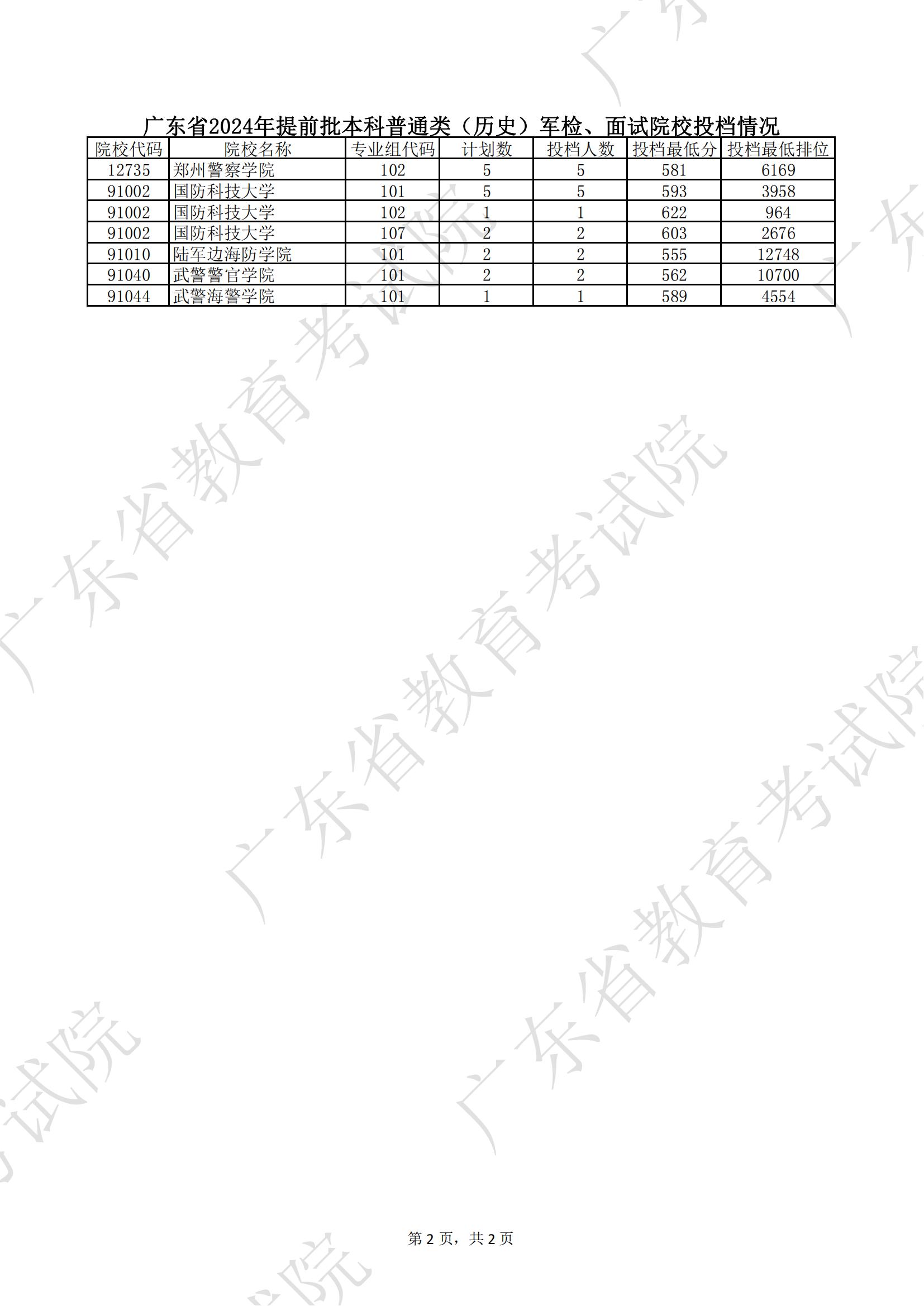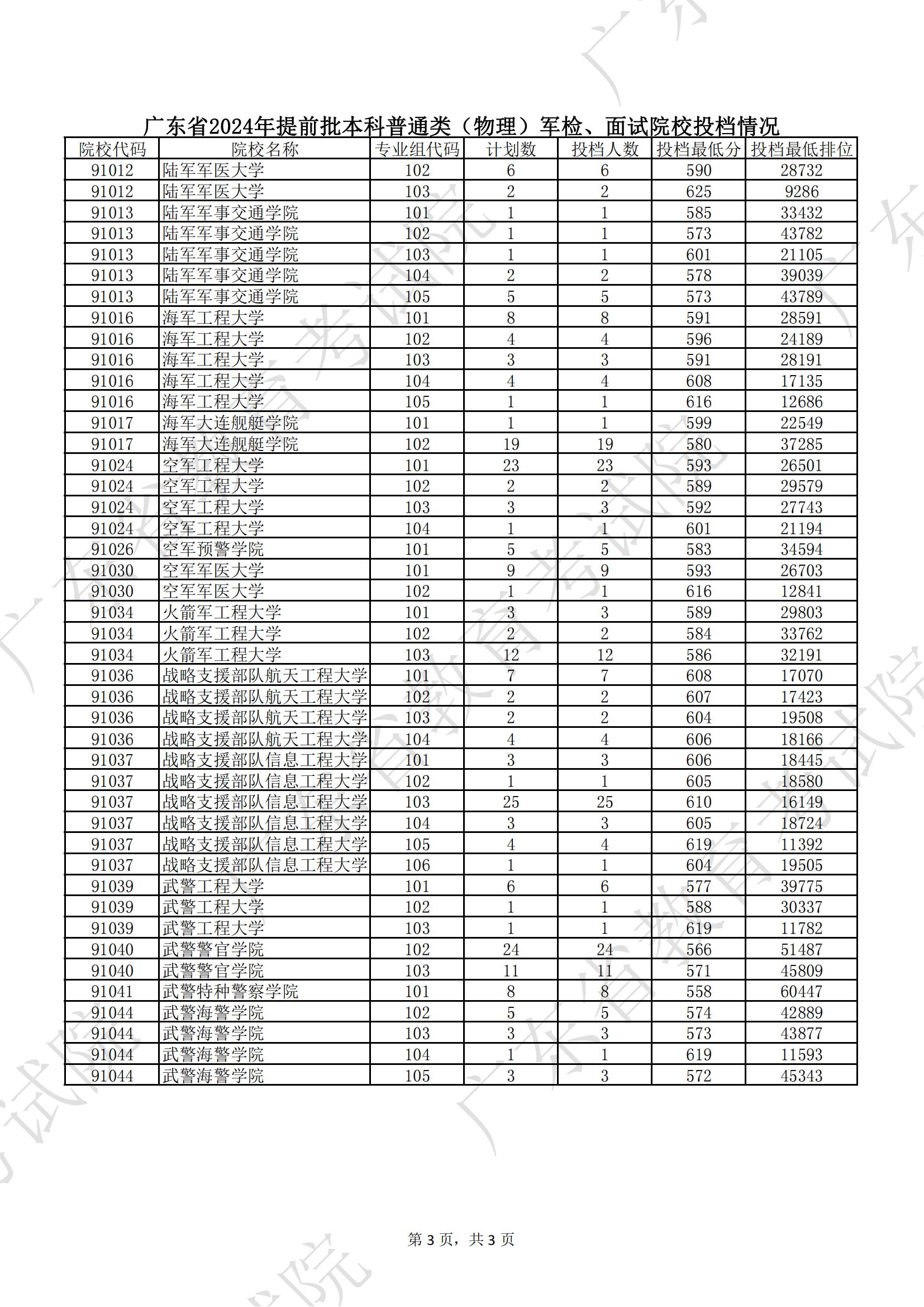 广东2024年高考本科提前批投档线已经公布。在广东首选物理科目高考本科提前批投档中,军校的投档分数线为: