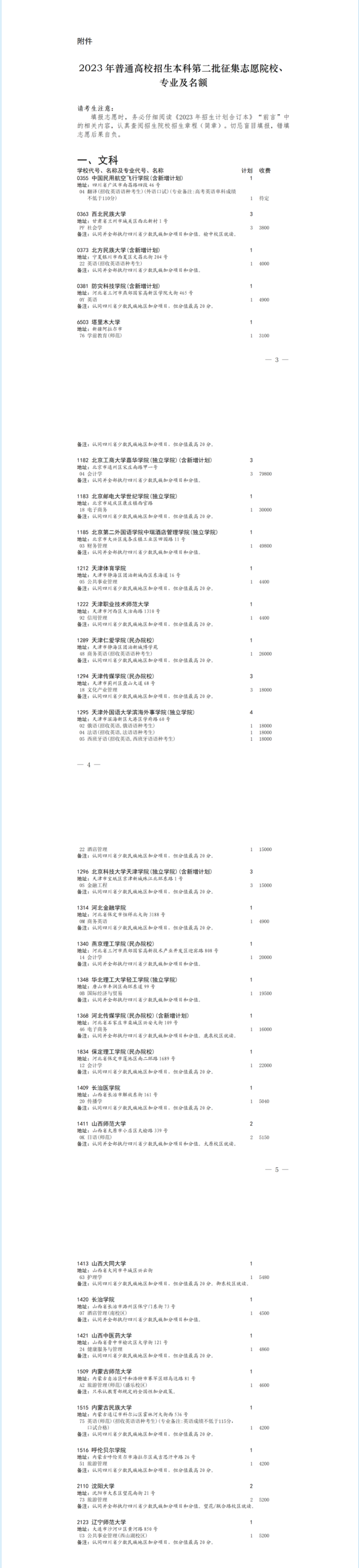 以下为2023年四川省本科二批征集志愿院校名单