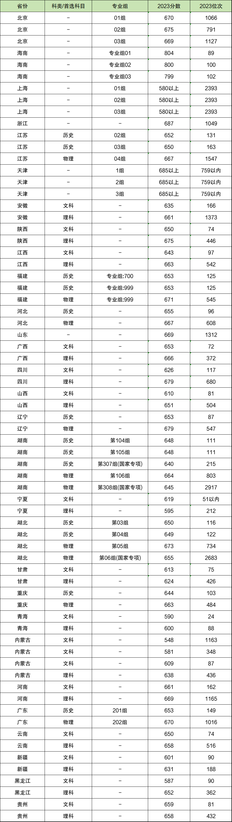 中国人民大学作为一所在全国都排的进前15名的高校,整体分数必然不低,根据2023年的录取情况来看,该校在各省的录取分数线基本在650分左右,不过省份和选择的科目不同,分数也还是一些差距的,在下文就可以查看详细的分数线。