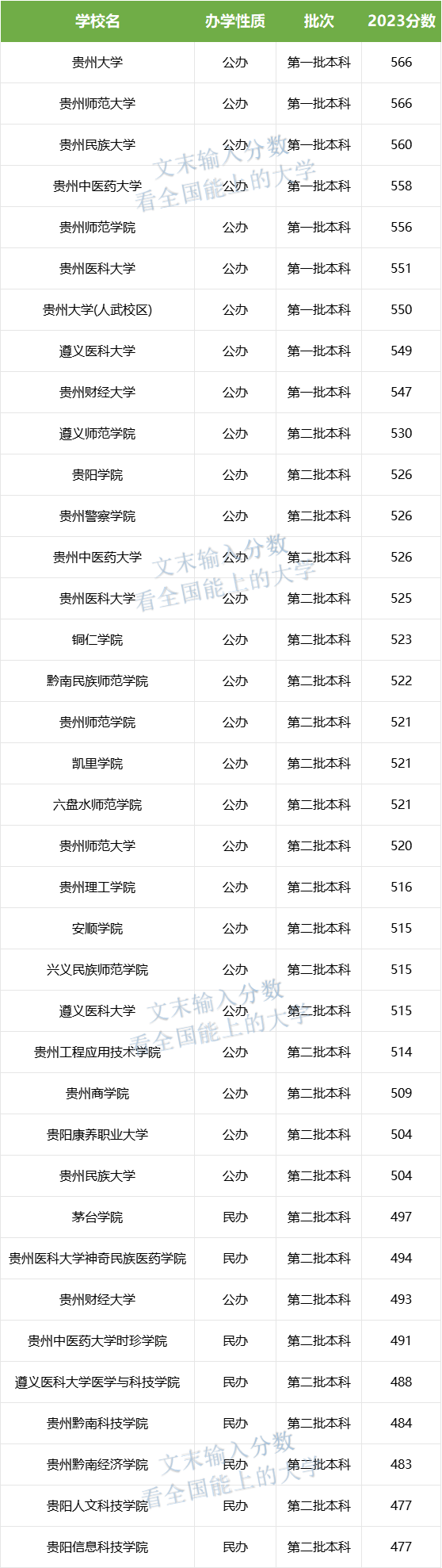 | 贵州民族大学 | 公办 | 第一批本科 | 477 |