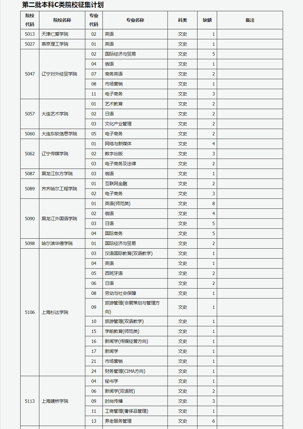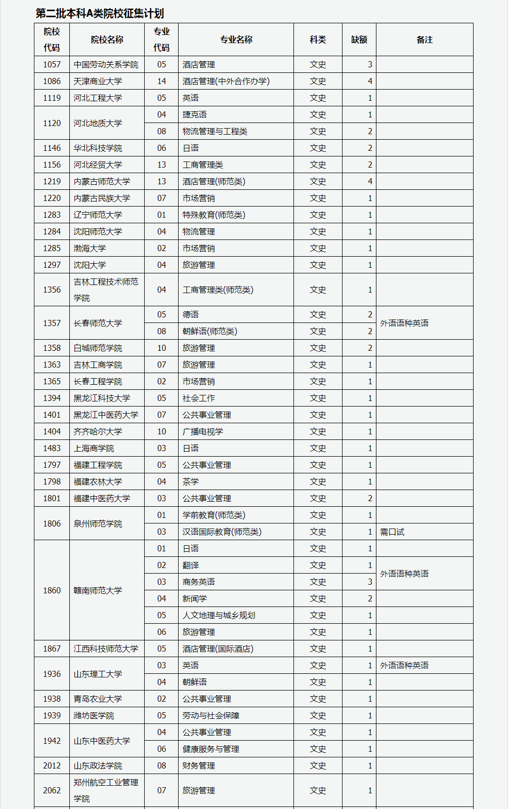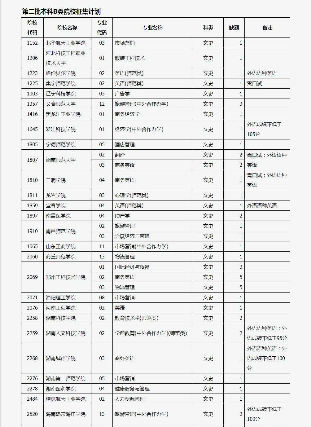 2、第二批本科A类、B类院校征集计划(可点击查看)
