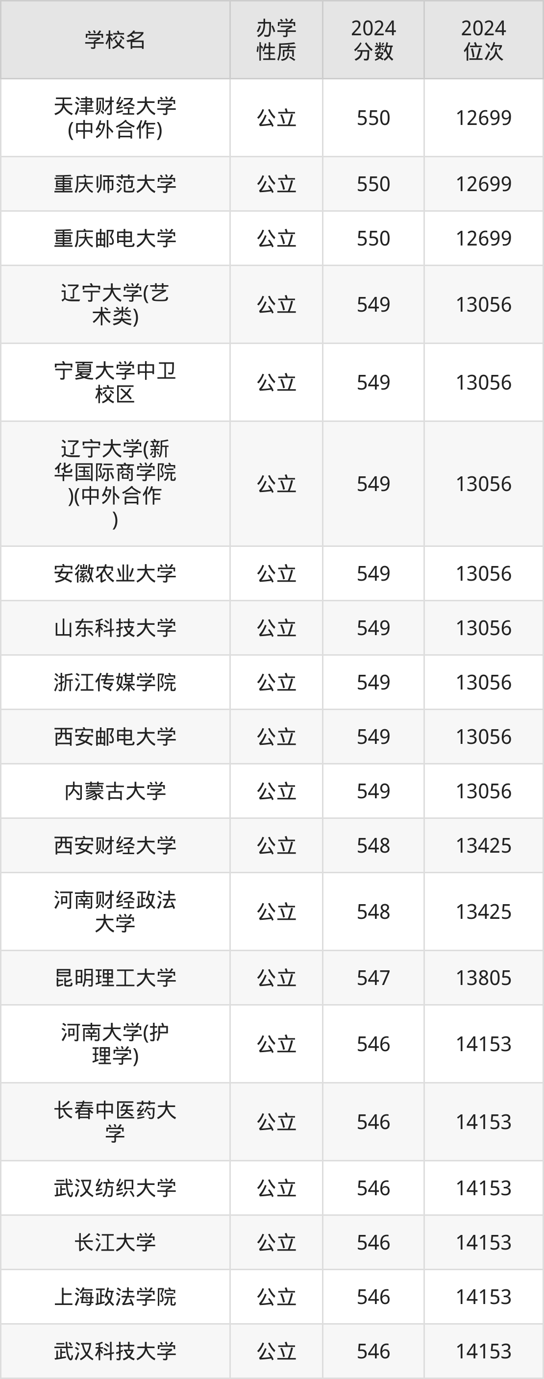 | 天津财经大学 (中外合作) | 550 | 12699 |