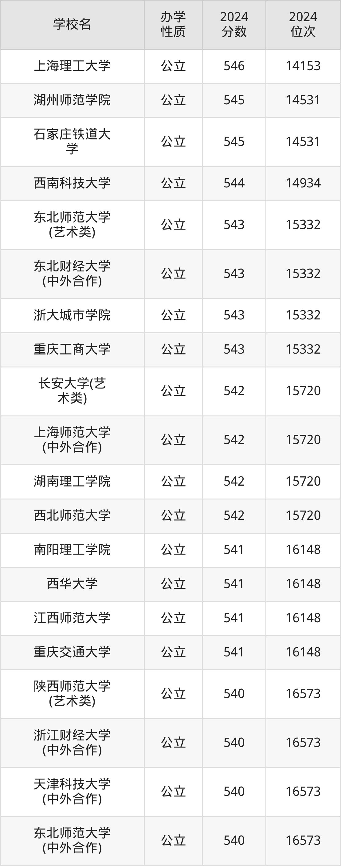 | 陕西师范大学 (艺术类) | 540 | 16573 |