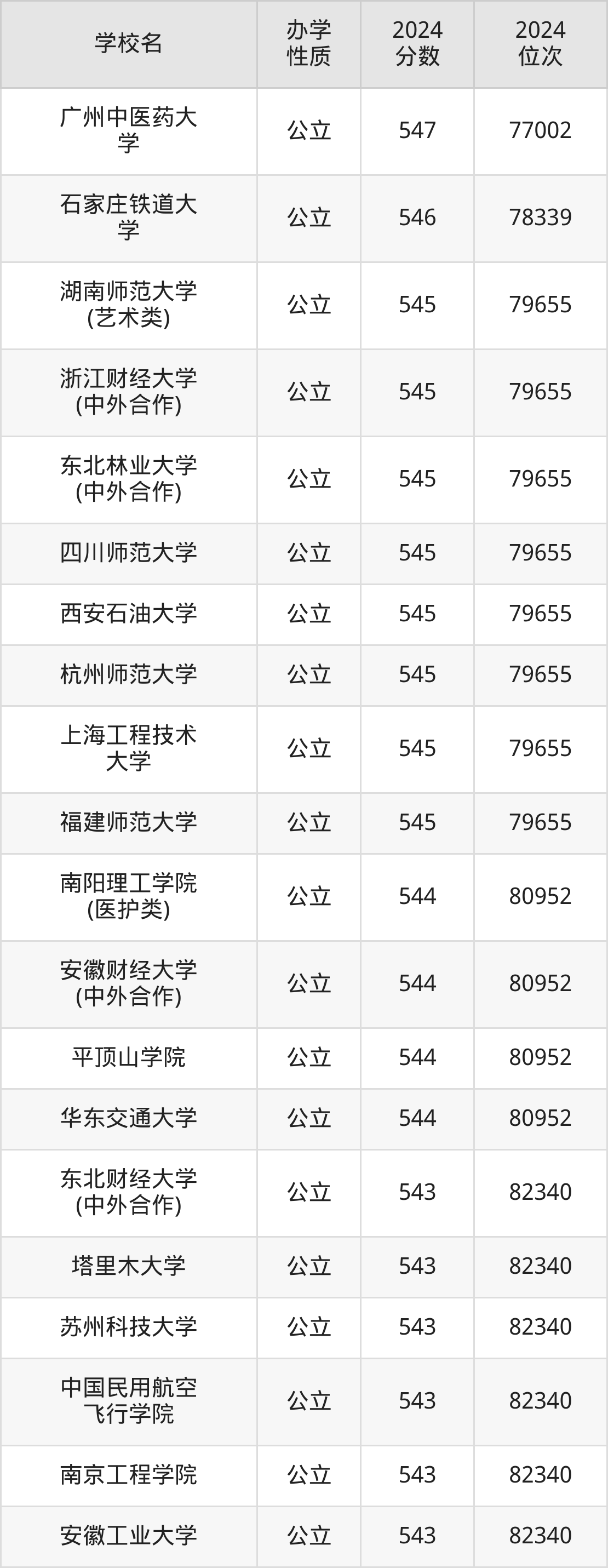 | 沈阳航空航天 大学(较高收 费) | 549 | 74409 |