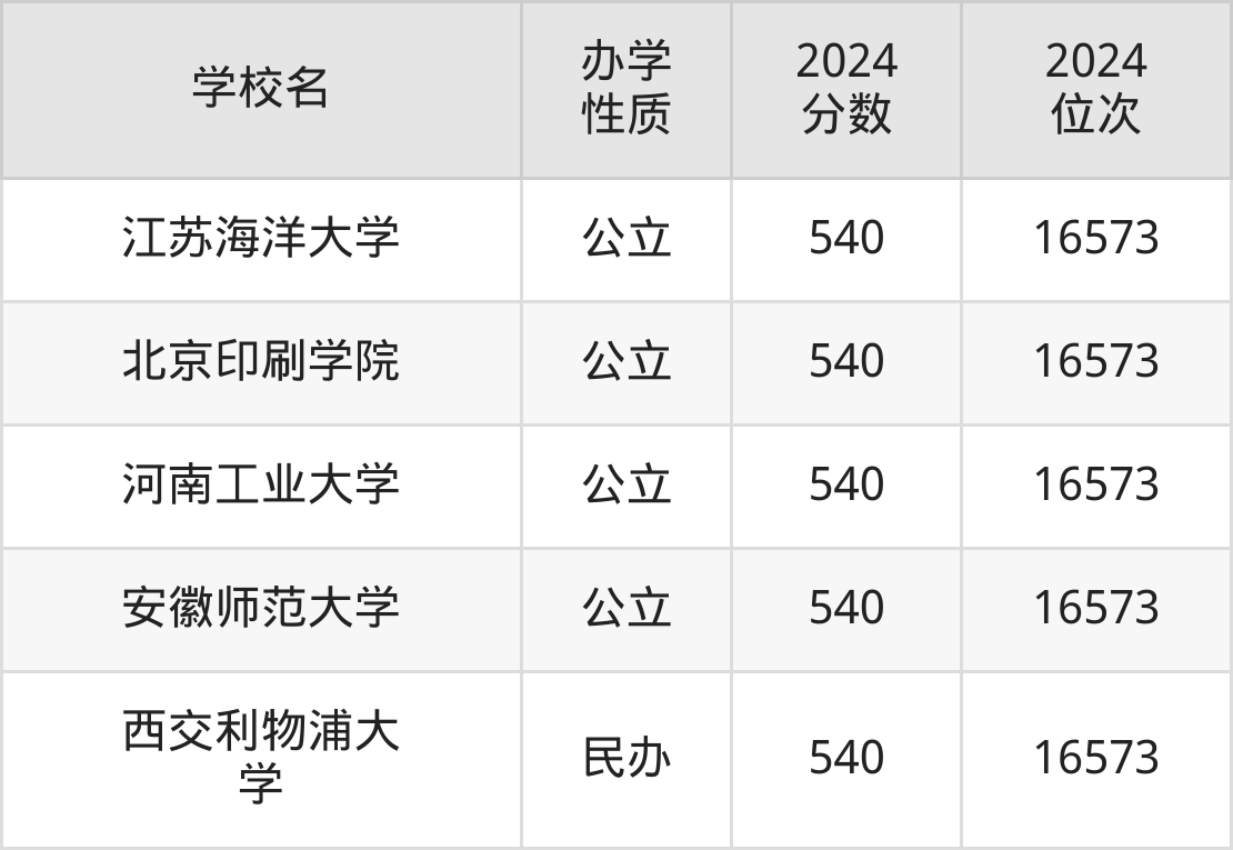 | 湖北大学(中 外合作) | 540 | 86324 |